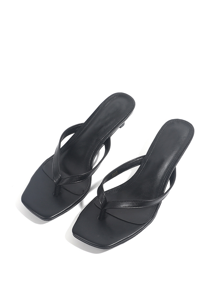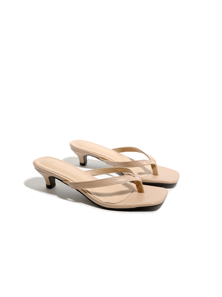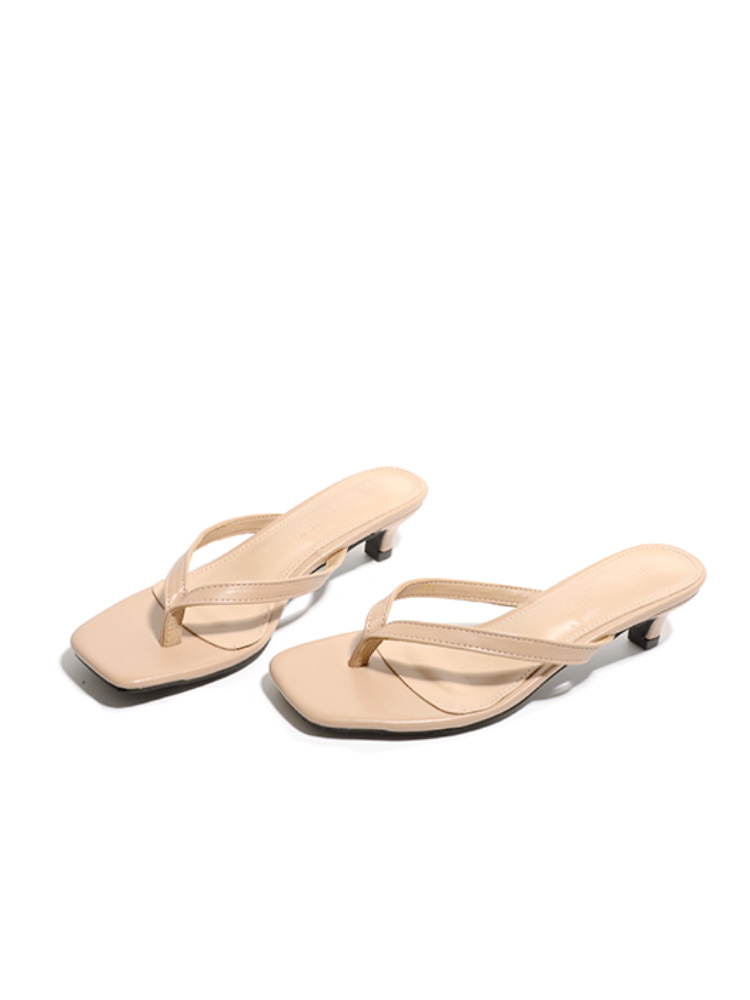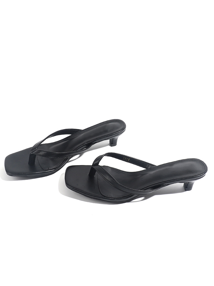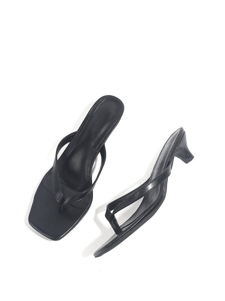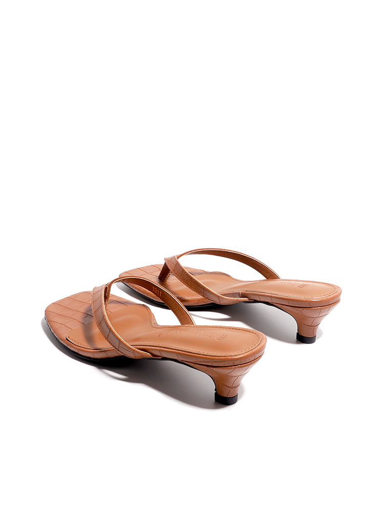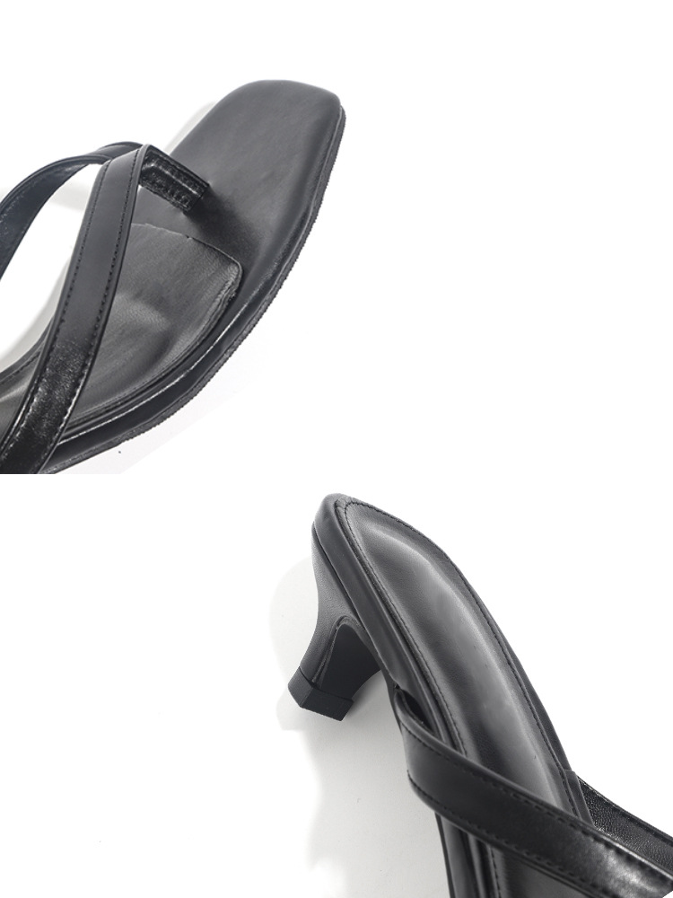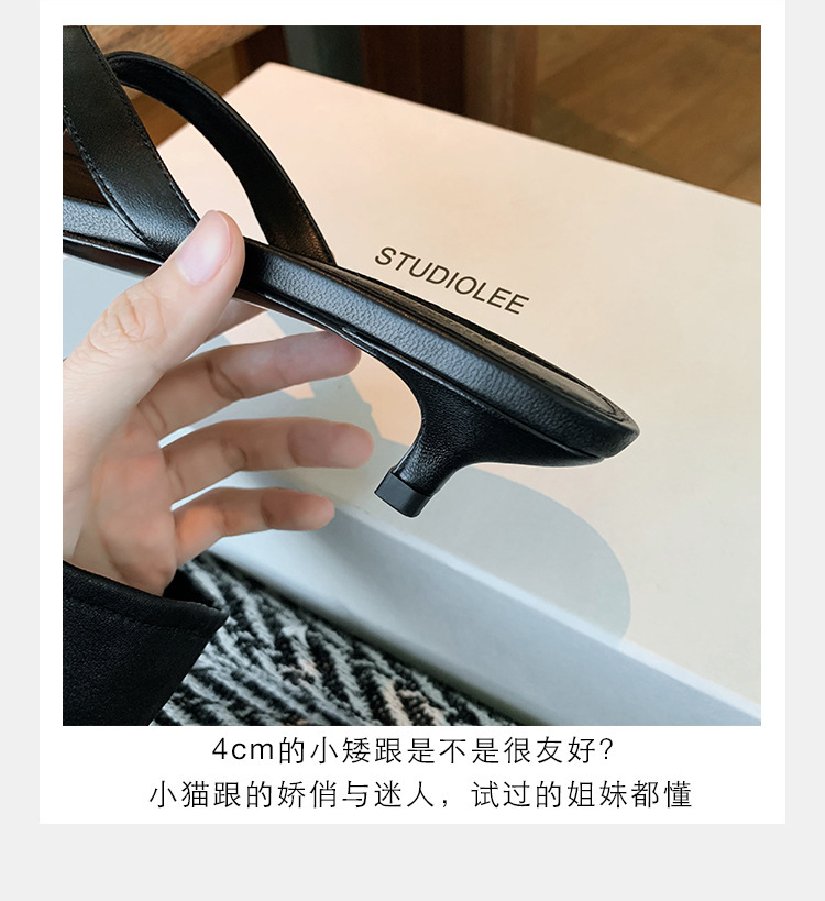 양가죽 버전 ~ 간단한 틈새 클립-가죽 플립 플롭 여성 새끼 고양이 뒤꿈치 하프 슬리퍼 로우 힐 샌들