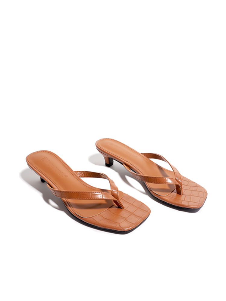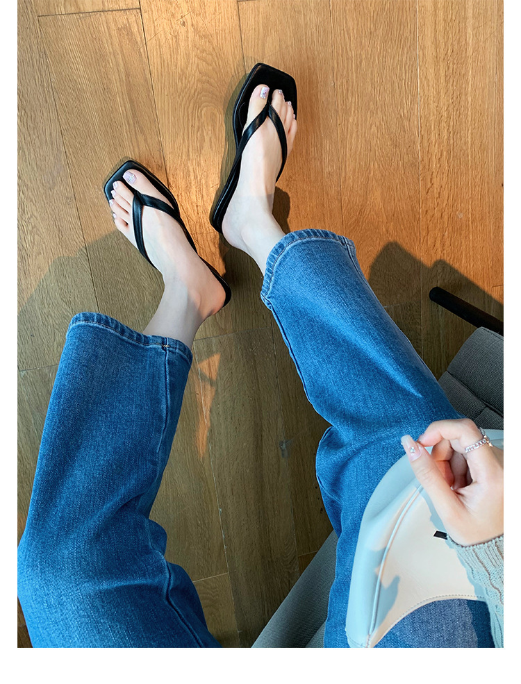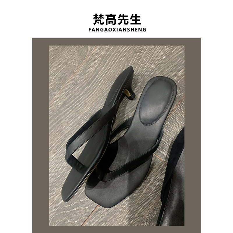 양가죽 버전 ~ 간단한 틈새 클립-가죽 플립 플롭 여성 새끼 고양이 뒤꿈치 하프 슬리퍼 로우 힐 샌들스토어 가기