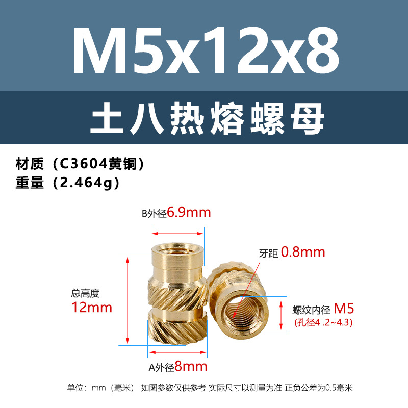• M5 * 12*8 (토양 8 핫멜트 너트)