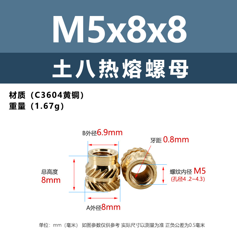 • M8 * 8*10 (토양 8 핫멜트 너트)