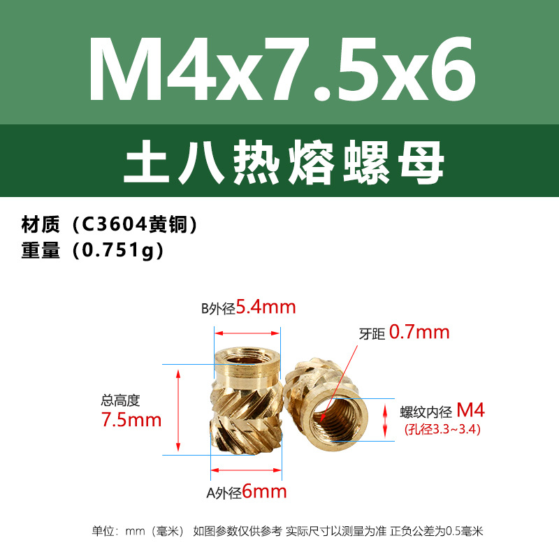 • M4 * 7.5*6 (토양 8 핫멜트 너트)