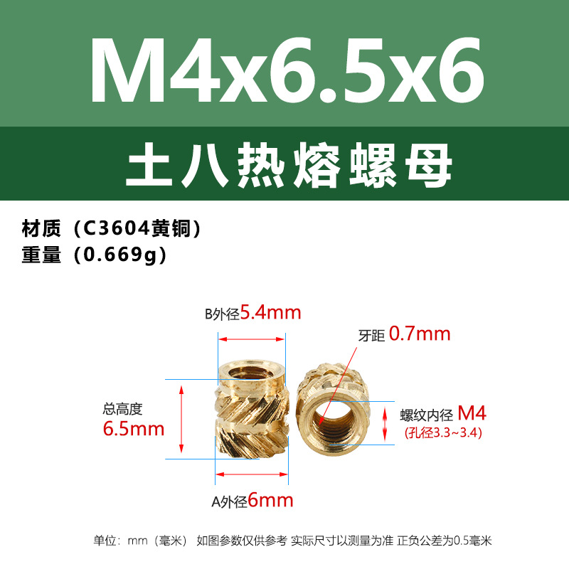 • M4 * 6*6.5 (토양 8 핫멜트 너트)