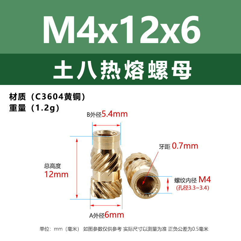 • M4 * 12*6 (토양 8 핫멜트 너트)