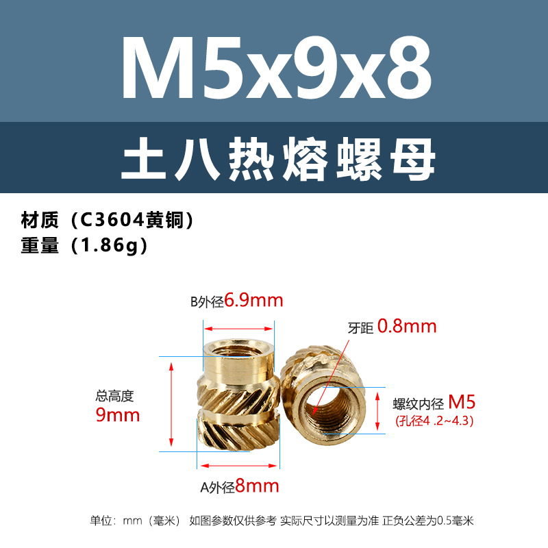 • M5 * 9*8 (토양 8 핫멜트 너트)