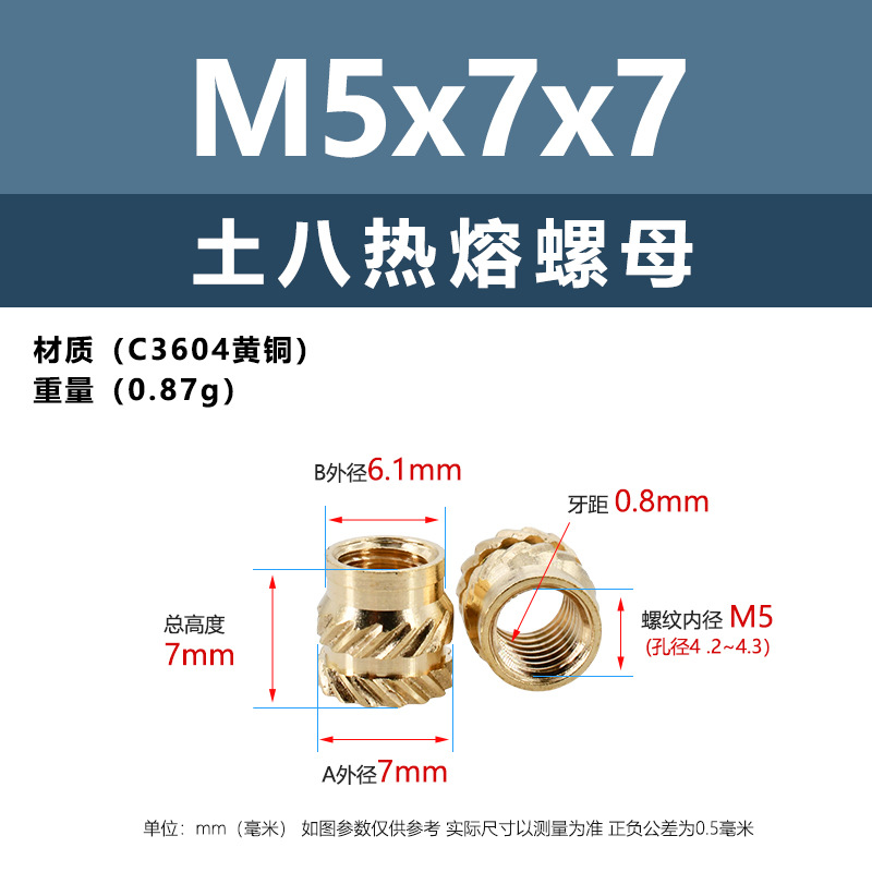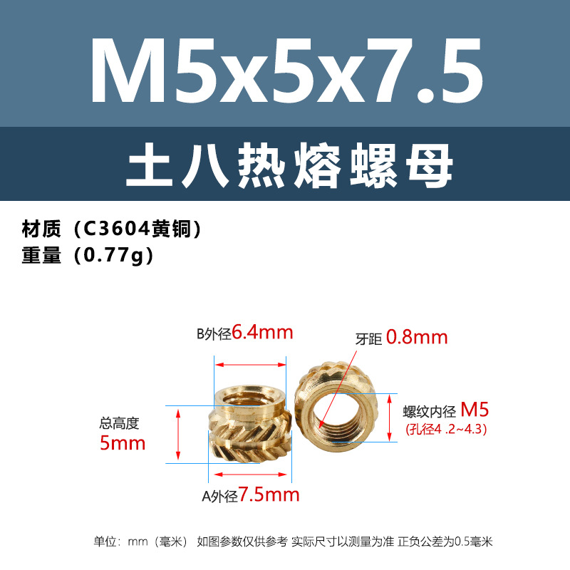 • M5 * 7.5*7 (토양 8 핫멜트 너트)