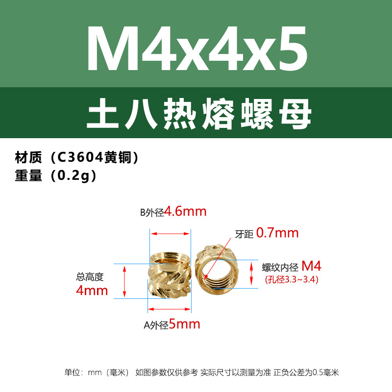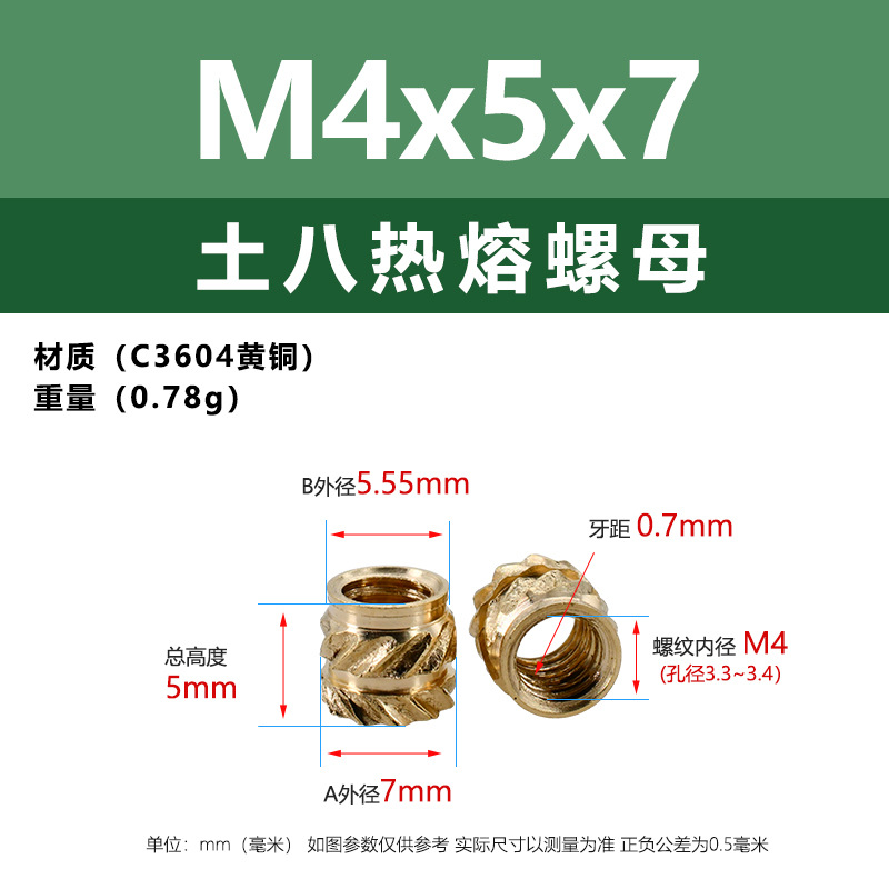 • M4 * 5*7 (토양 8 핫멜트 너트)