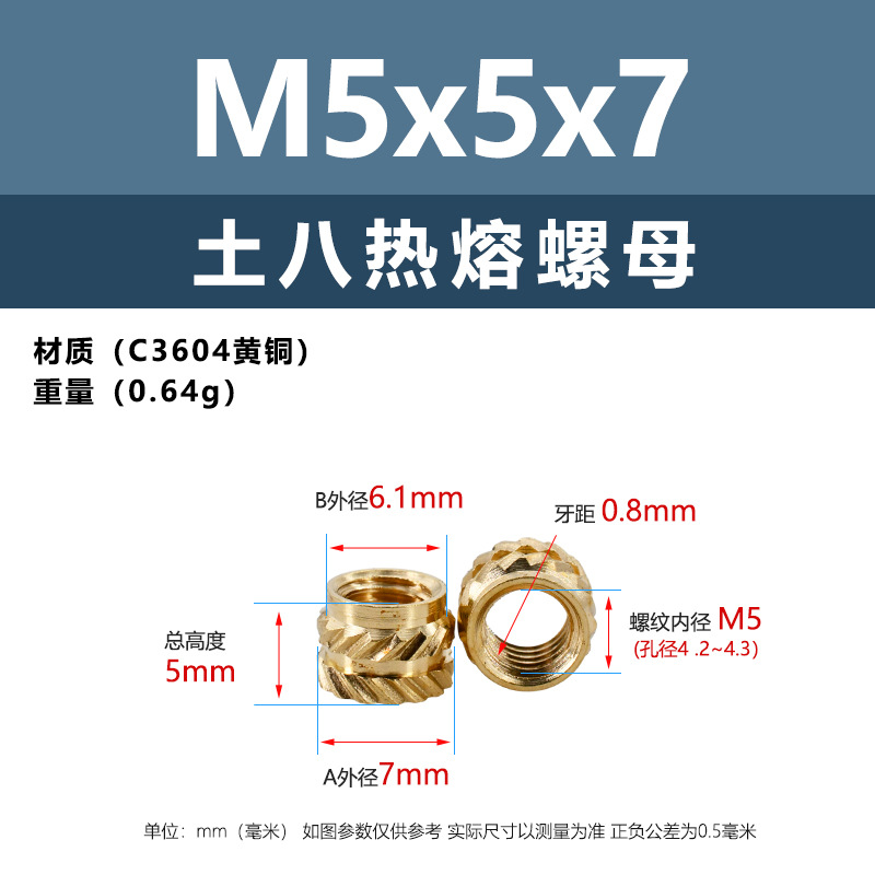 • M5 * 5*7 (토양 8 핫멜트 너트)