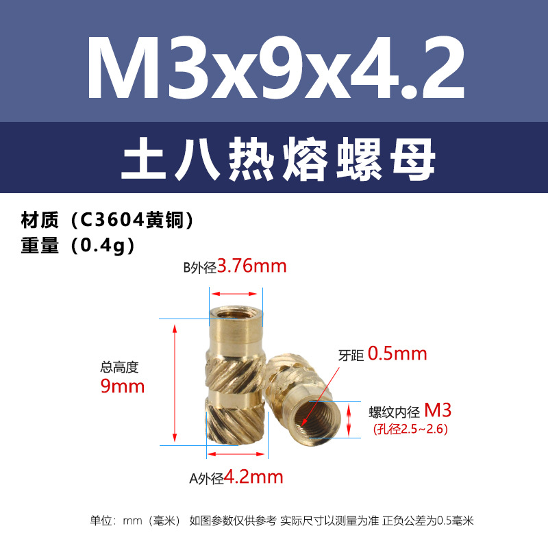 • M3 * 9*4.2 (토양 8 핫멜트 너트)