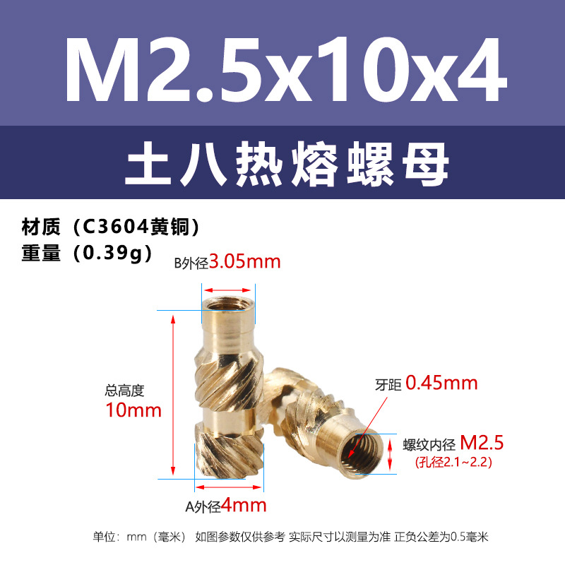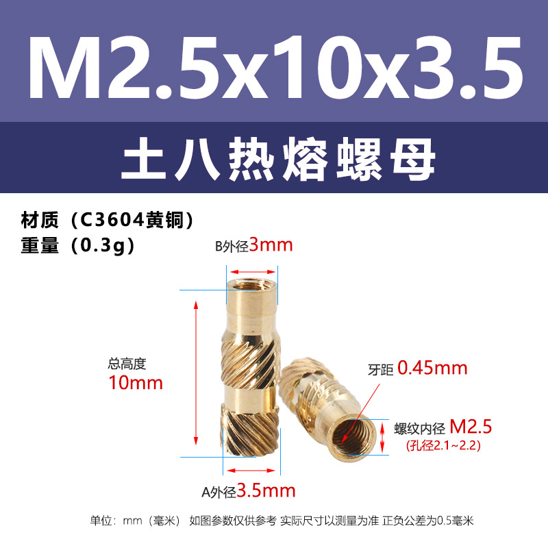 • M2.5 * 10*3.5 (토양 8 핫멜트 너트)