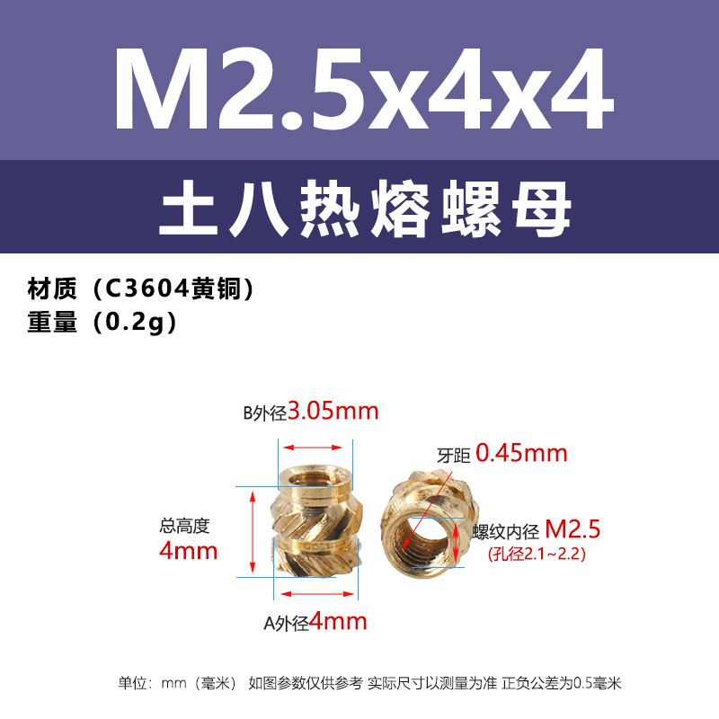 • M2.5 * 4*4 (토양 8 핫멜트 너트)