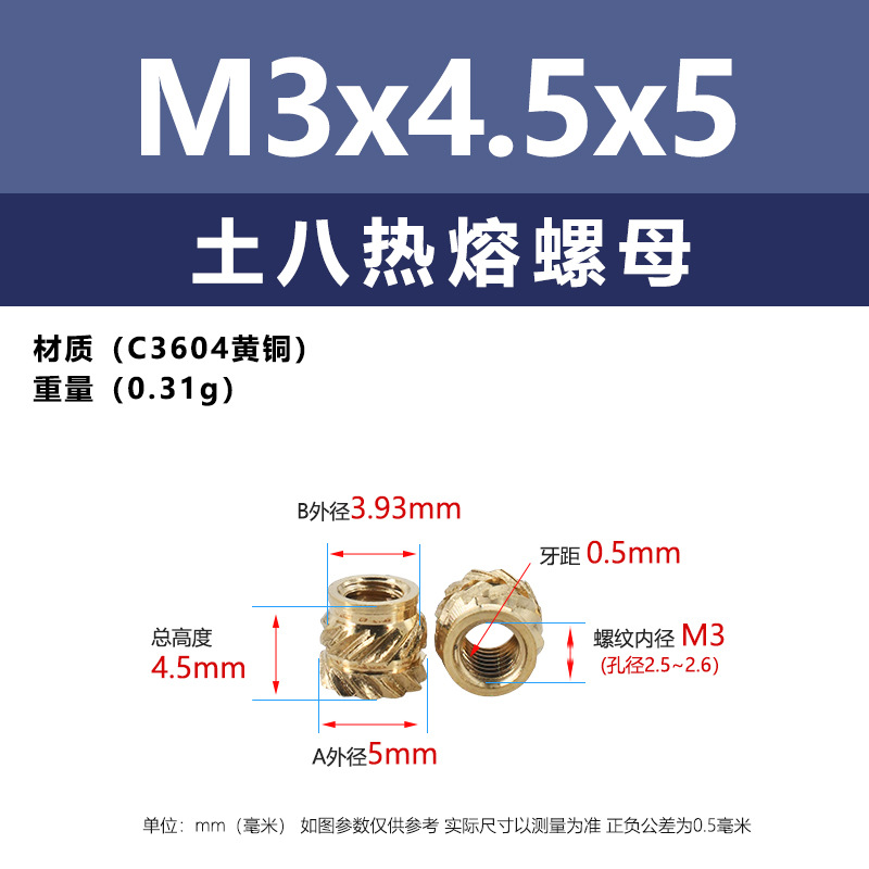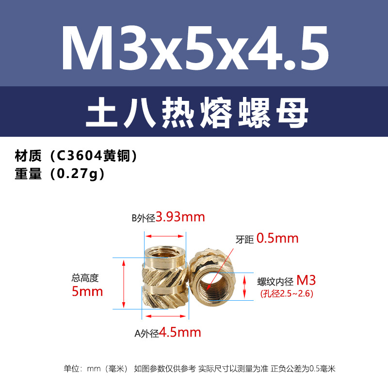 • M3 * 4.5*5 (토양 8 핫멜트 너트)