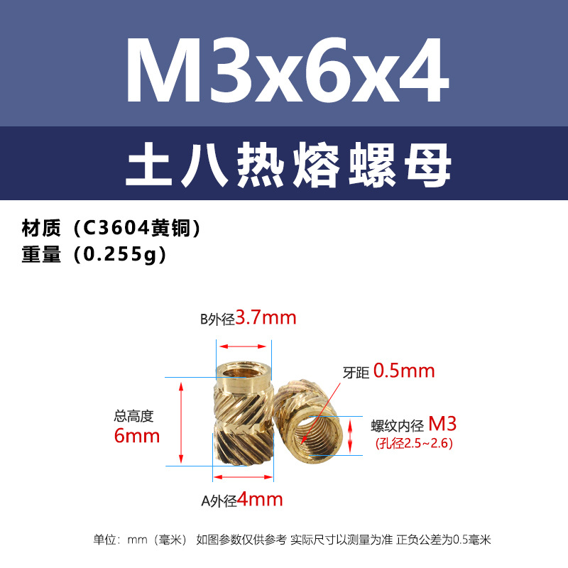 • M3 * 6*4 (토양 8 핫멜트 너트)