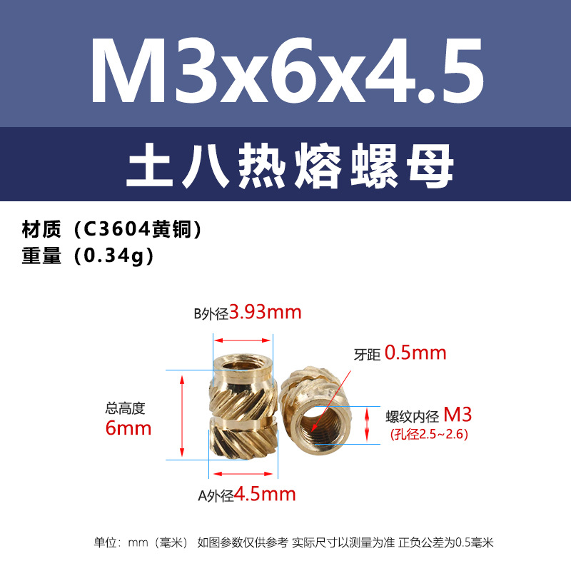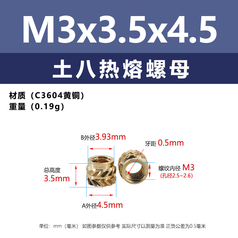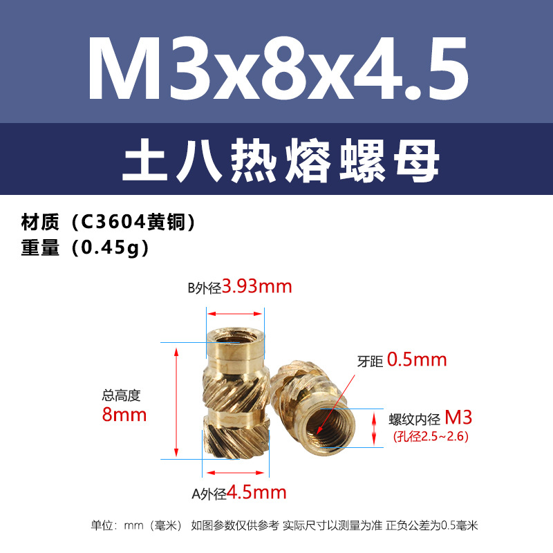 • M3 * 3.5*4.5 (토양 8 핫멜트 너트)