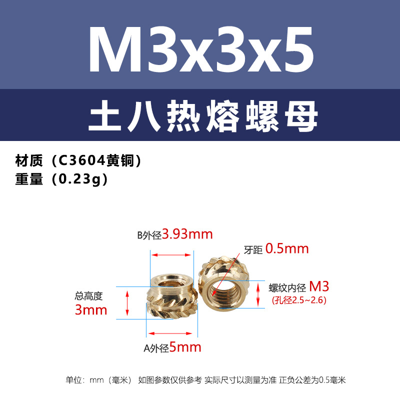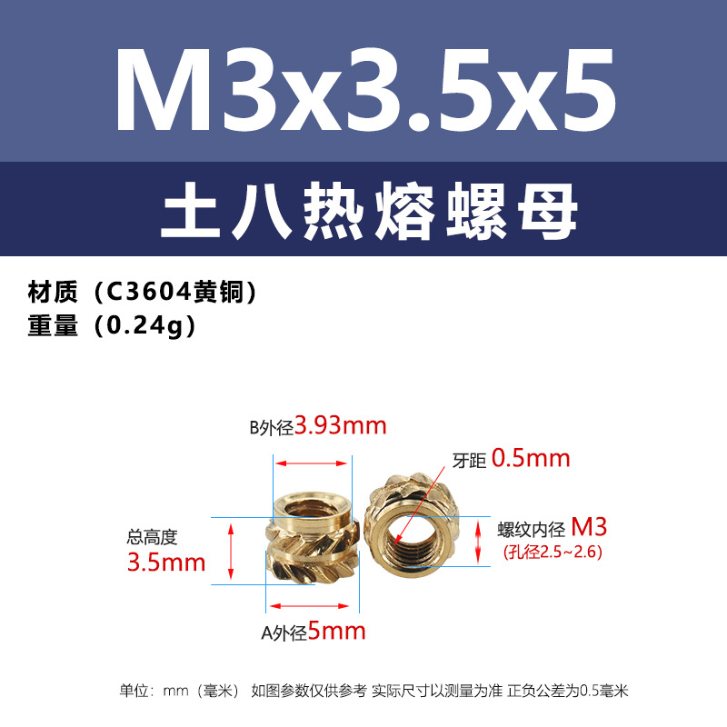 • M3 * 3.5*5 (토양 8 핫멜트 너트)
