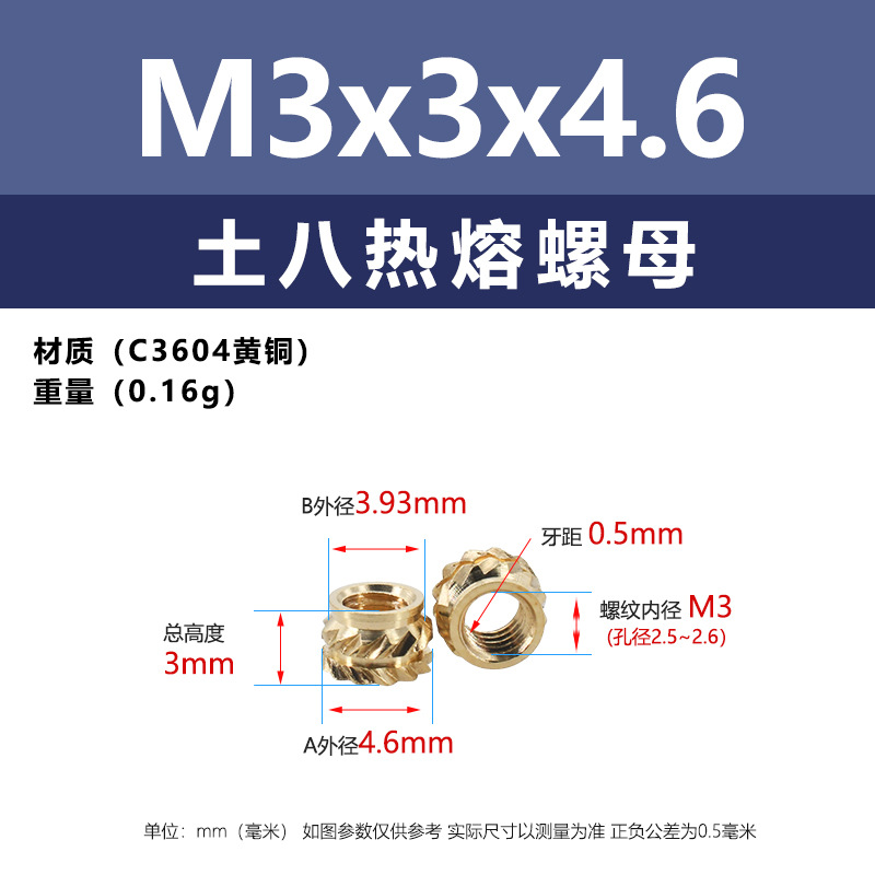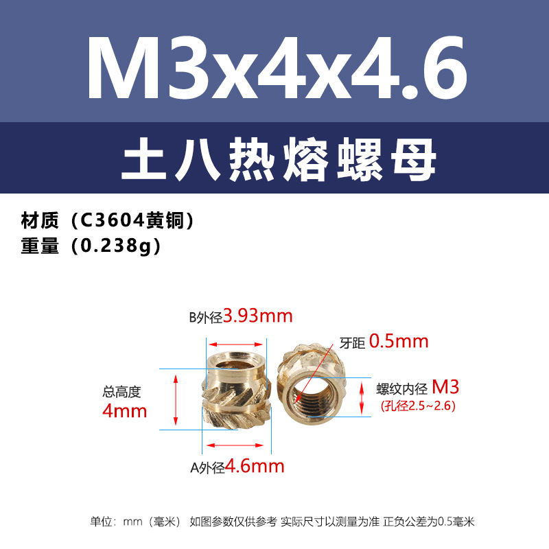 • M3 * 3*4.6 (토양 8 핫멜트 너트)
