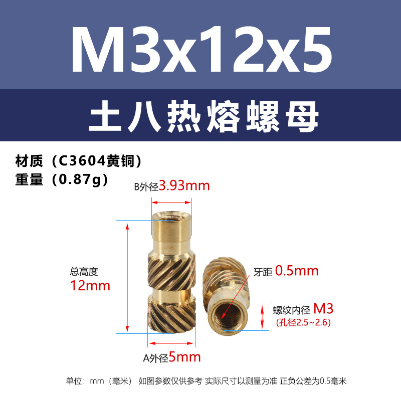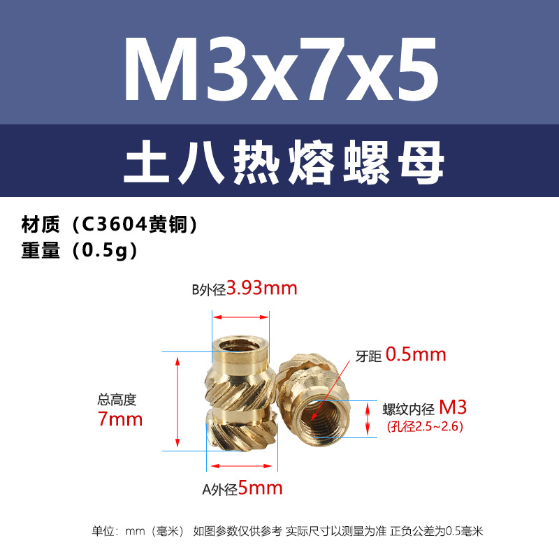 • M3 * 7*5 (토양 8 핫멜트 너트)