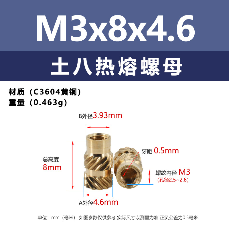 • M3 * 8*4.6 (토양 8 핫멜트 너트)