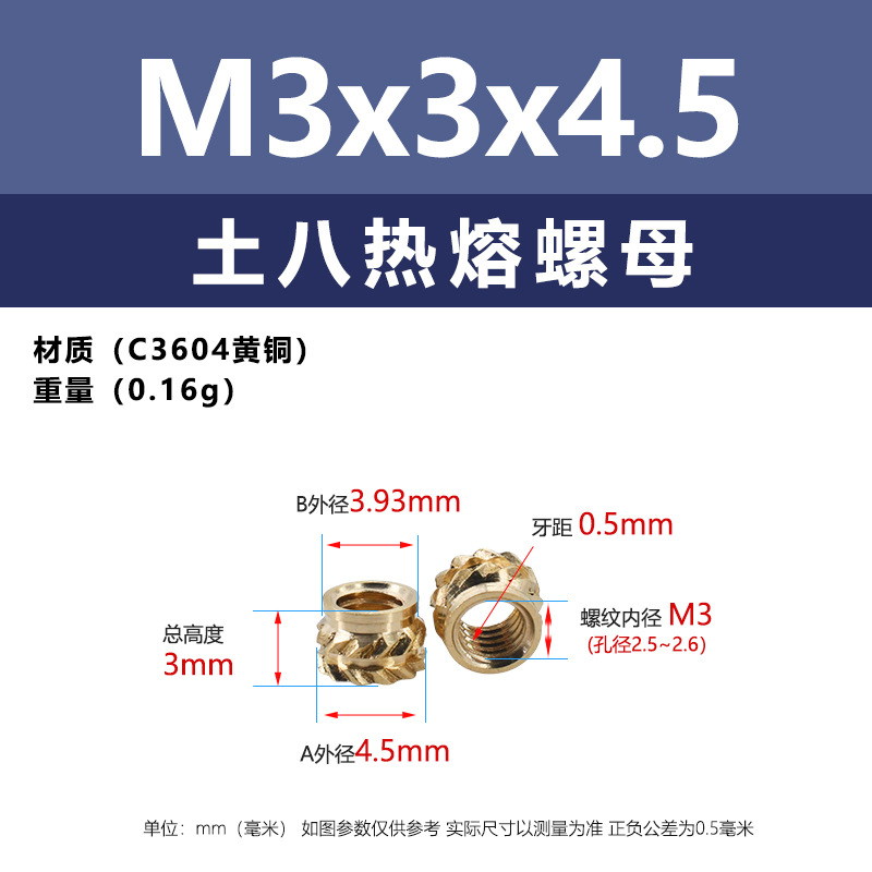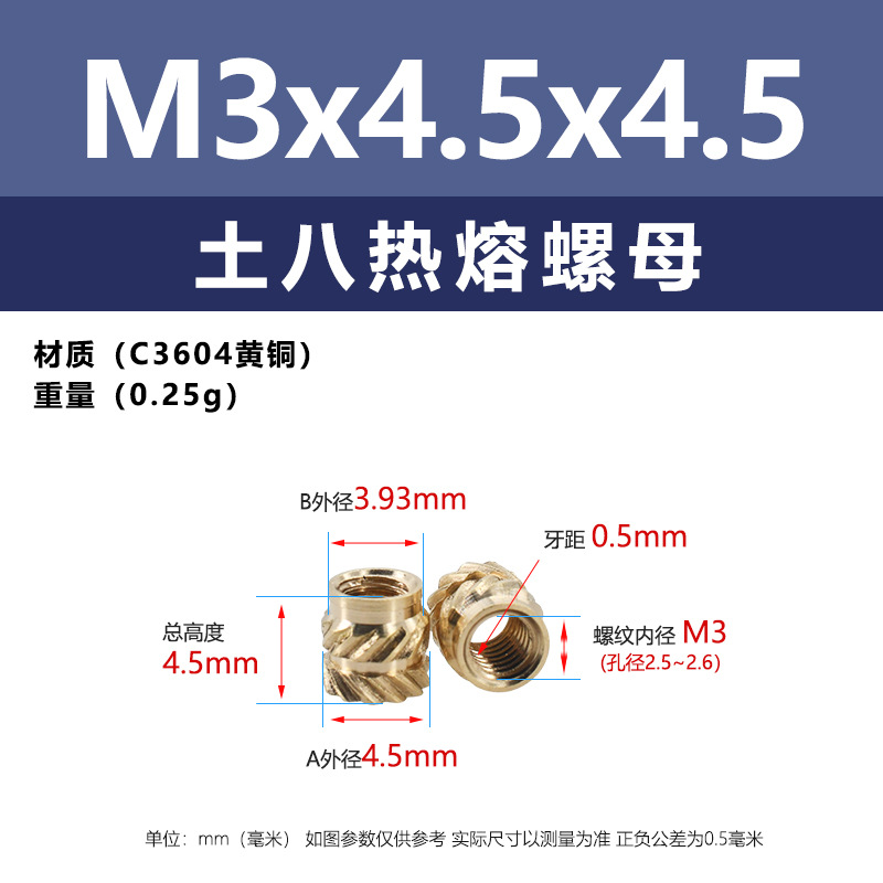 • M3 * 4.5*4.5 (토양 8 핫멜트 너트)