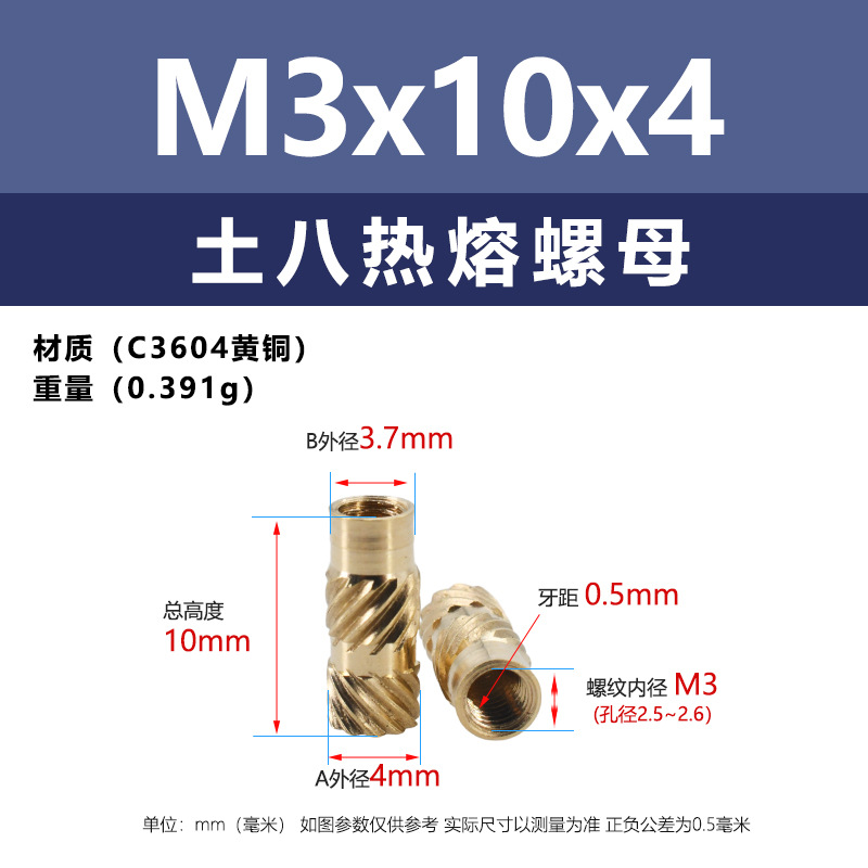 • M3 * 10*4 (토양 8 핫멜트 너트)
