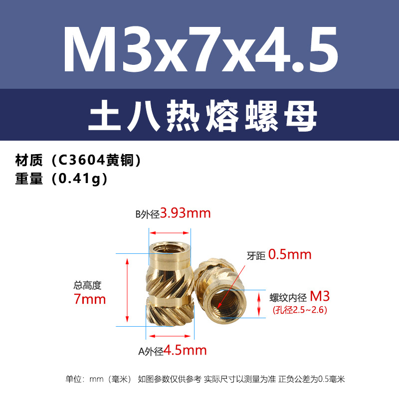 • M3 * 7*4.5 (토양 8 핫멜트 너트)