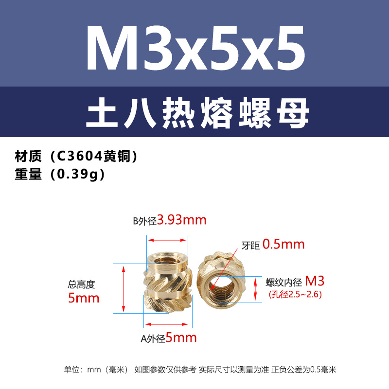 • M3 * 5*5 (토양 8 핫멜트 너트)