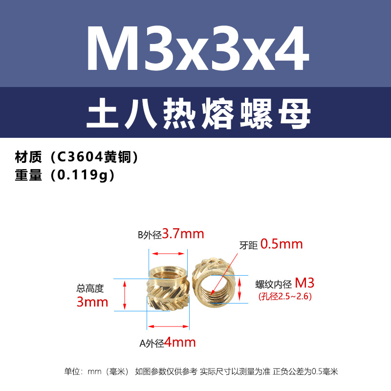 • M3 * 3*4 (토양 8 핫멜트 너트)
