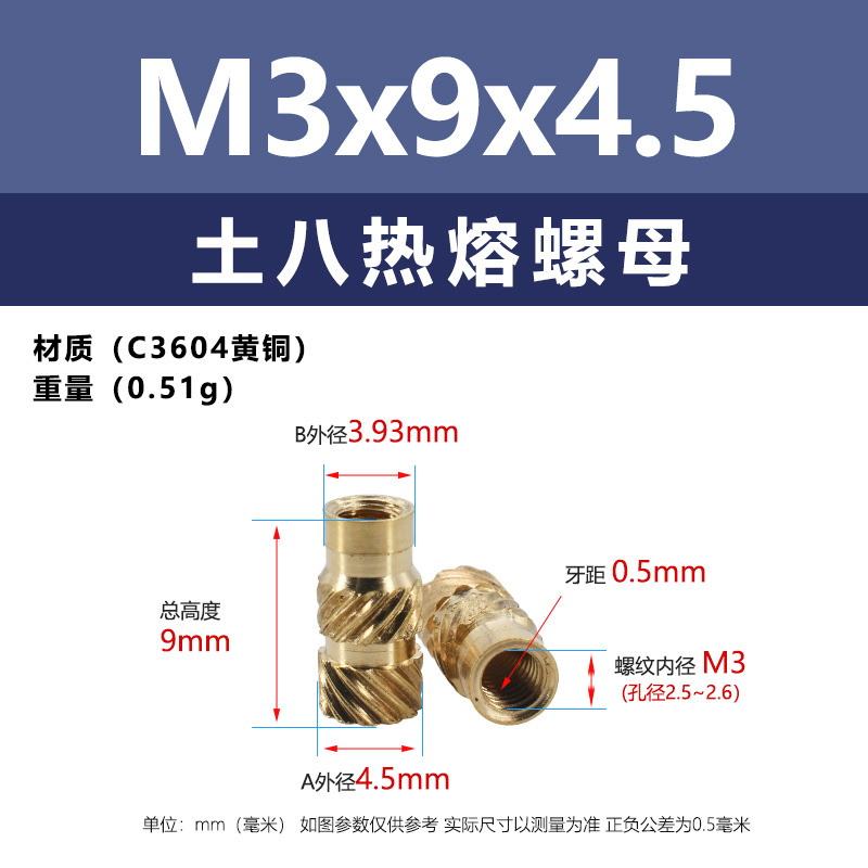 • M3 * 9*4 (토양 8 핫멜트 너트)