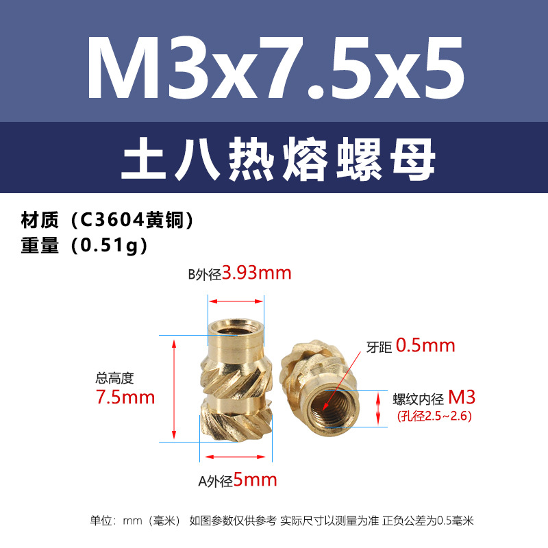 • M3 * 7.5*5 (토양 8 핫멜트 너트)