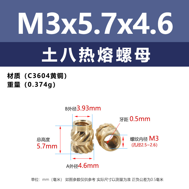 • M3 * 5.7*4.6 (토양 8 핫멜트 너트)