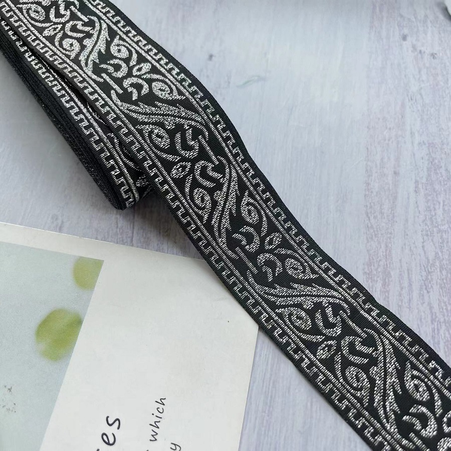 민족 레이스 블랙 실버 꽃 패턴 한 의류 액세서리 AH-2827 폭 3.5CM
