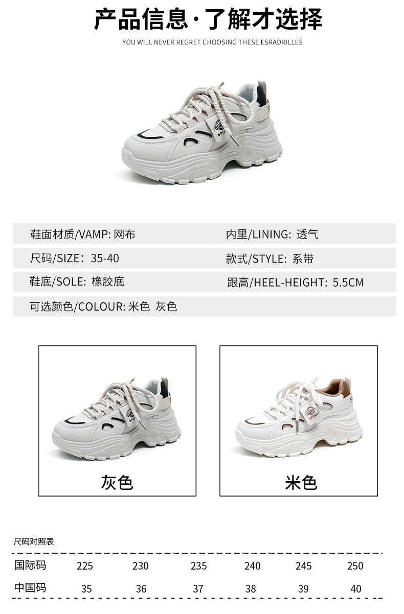 Ins Korean Style New Torre Shoes 여성 2024 봄 학생 스포츠 런닝화 캐주얼 신발 두꺼운 단독 T73-1 증가