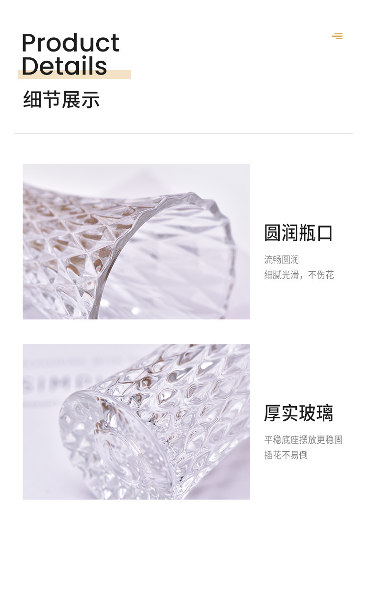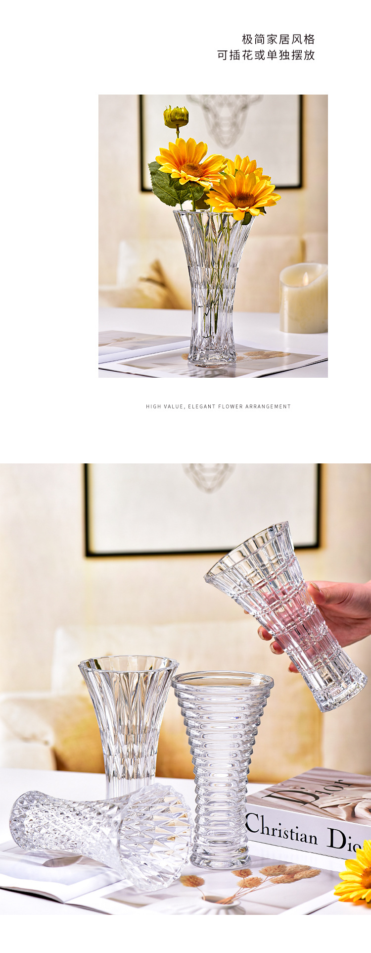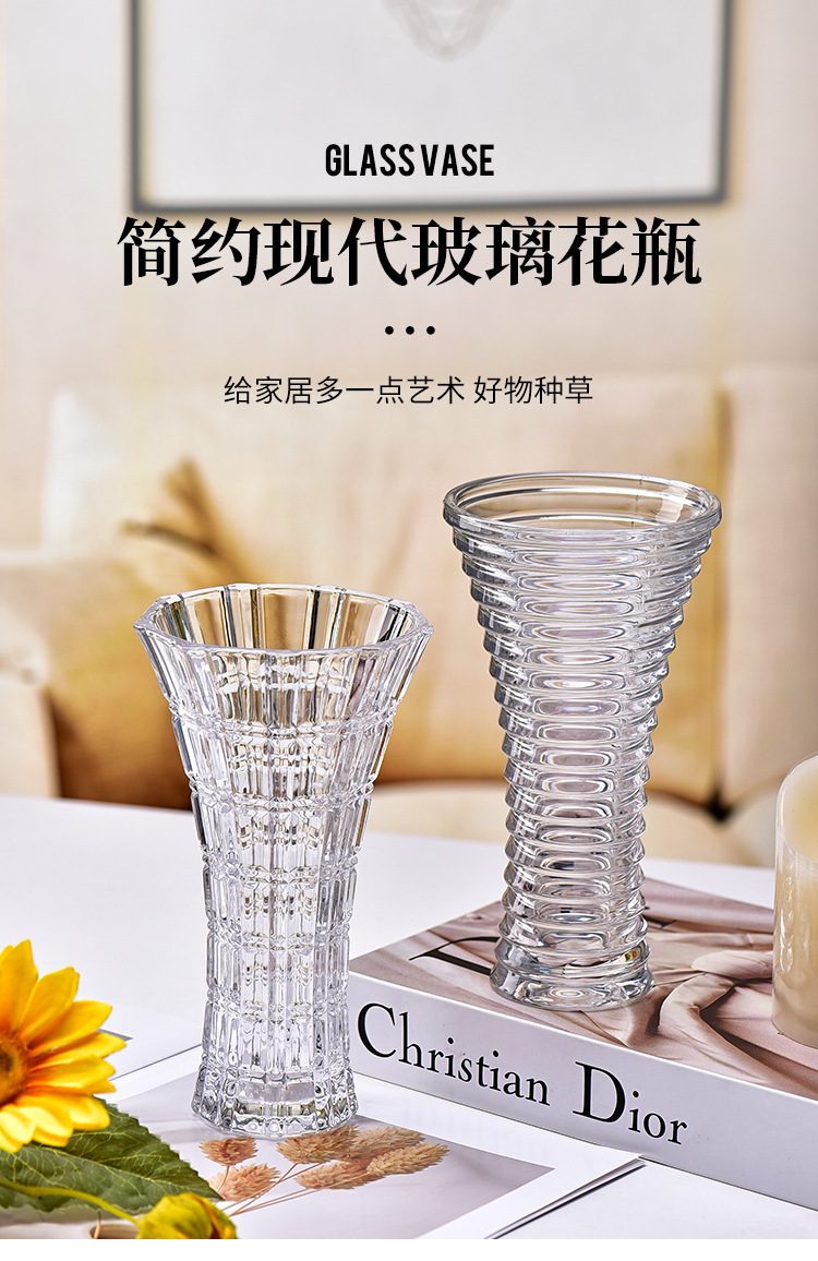 투명한 가정용 유리 수경 화병, 독창적인 허리라인의 큰 화병, 도매 거실 장식용 꽃꽂이 화병스토어 가기