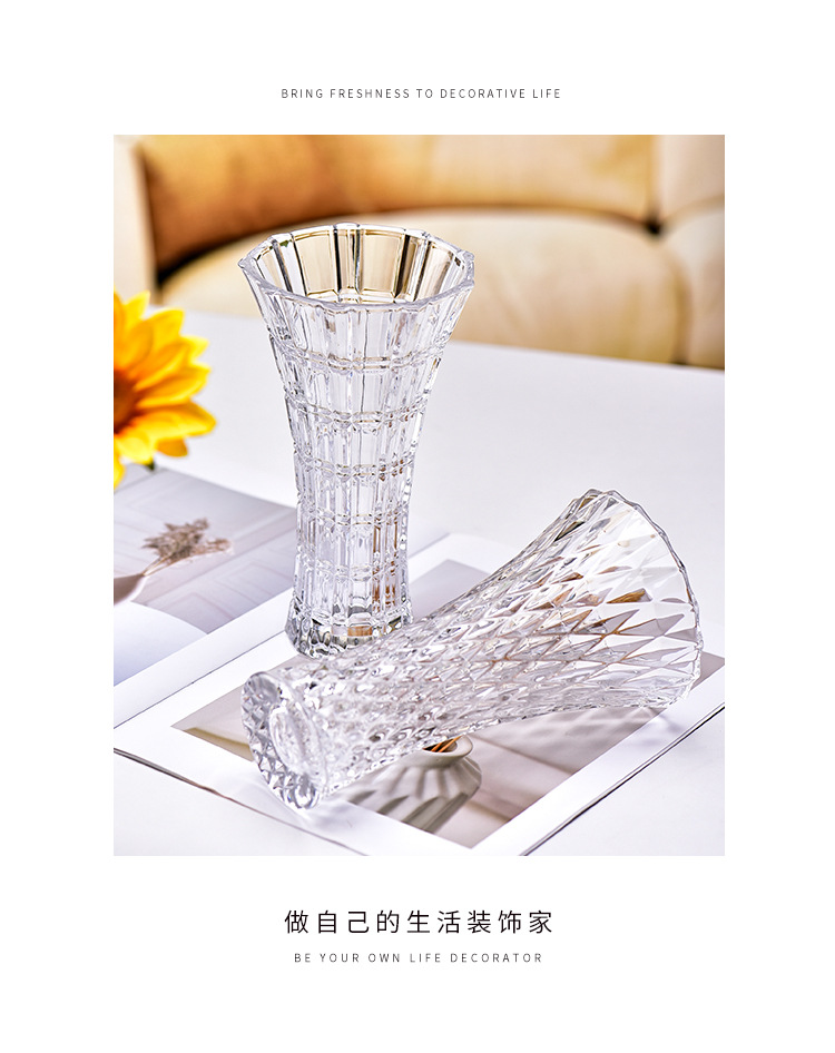 투명한 가정용 유리 수경 화병, 독창적인 허리라인의 큰 화병, 도매 거실 장식용 꽃꽂이 화병