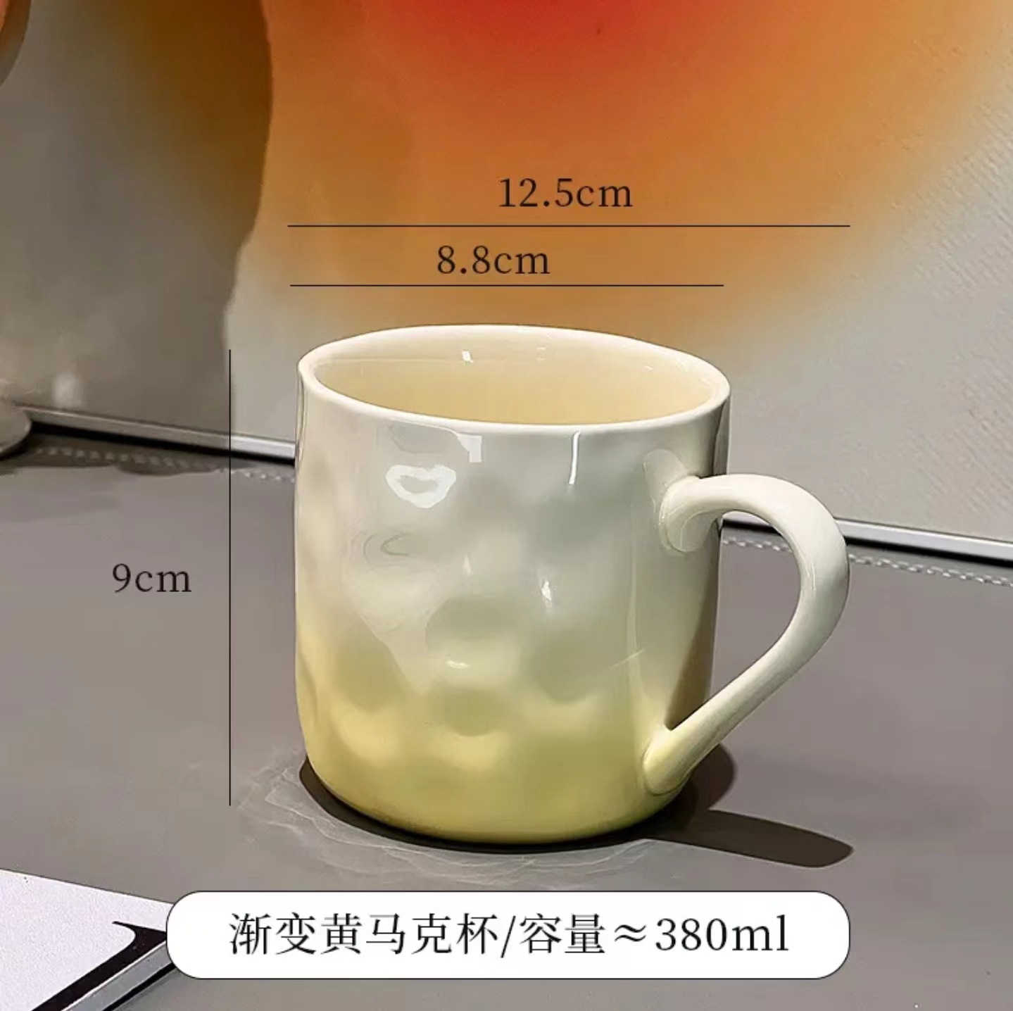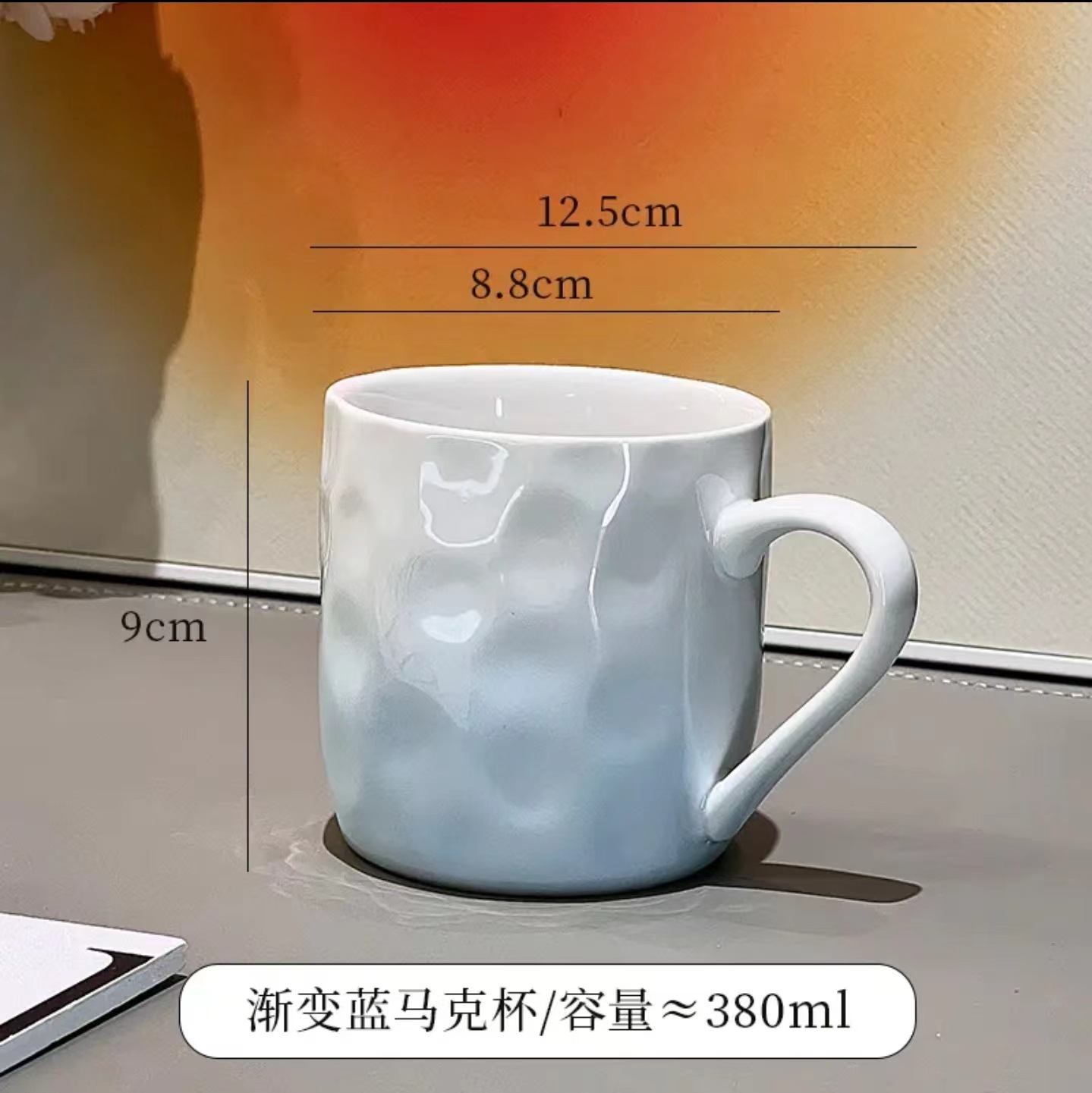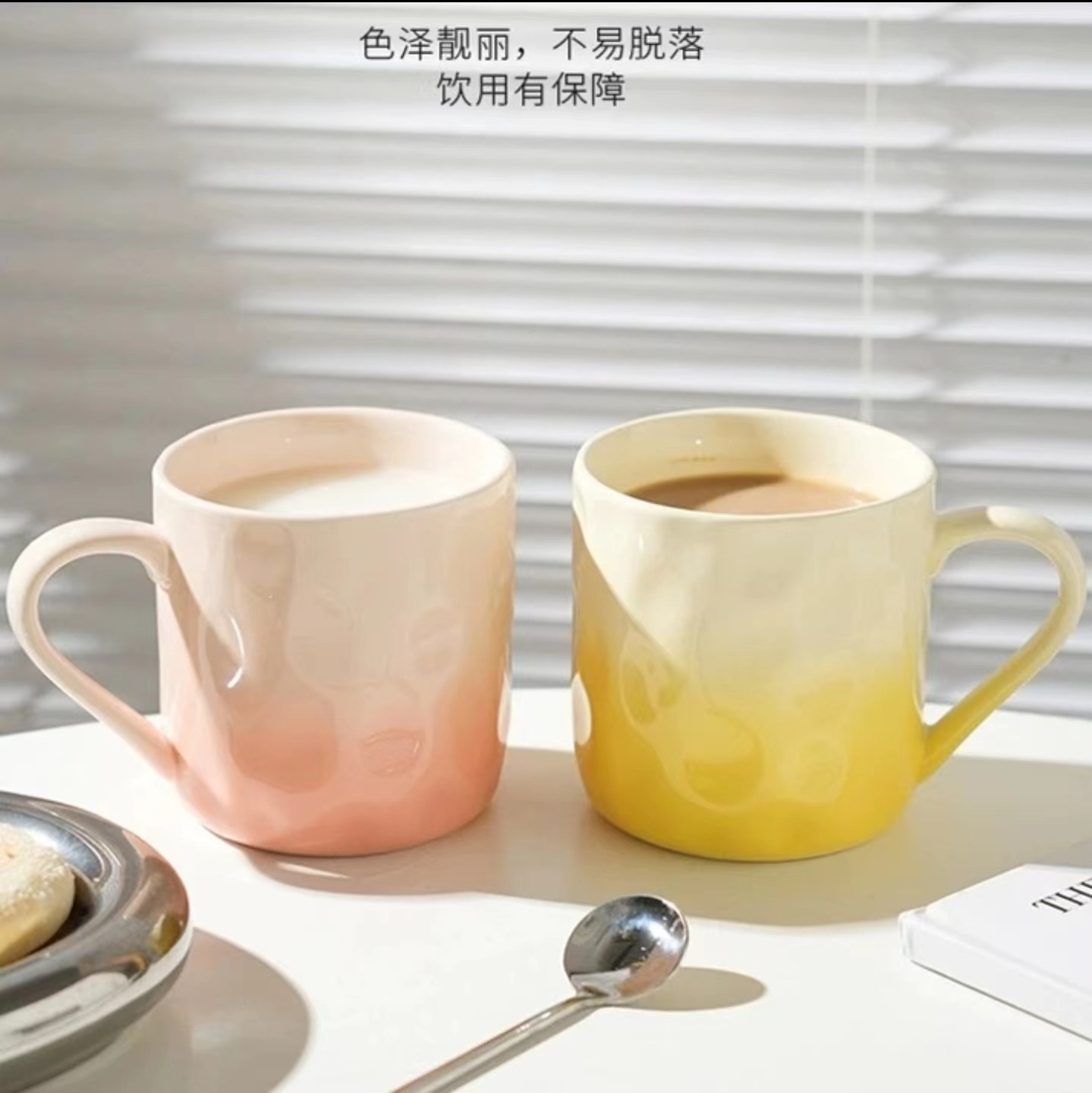 세라믹 Ins 머그잔 물 컵 가구 창조적 인 그라디언트 아침 식사 컵 높은 색상 가치 손 핀치 패턴 커플 커피 컵