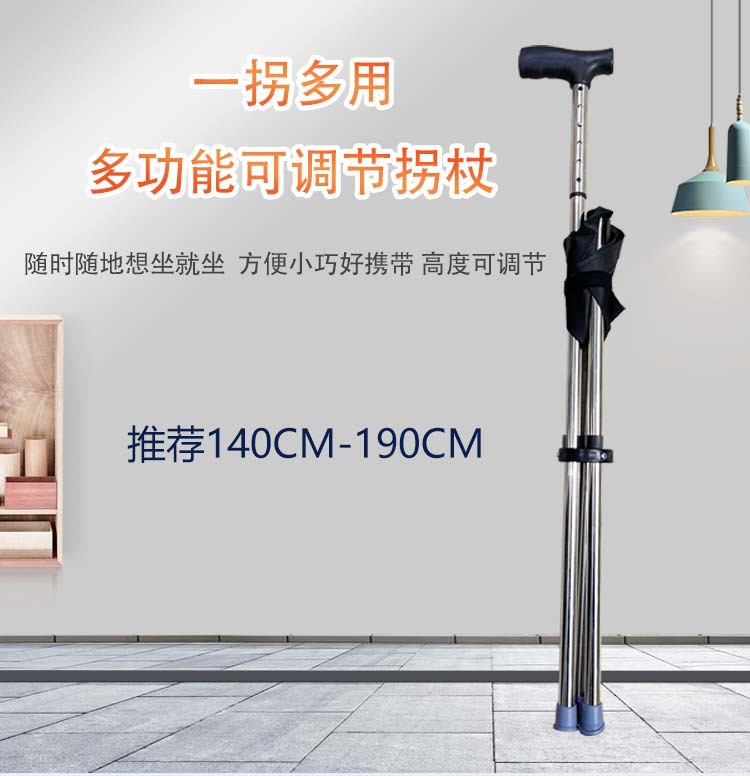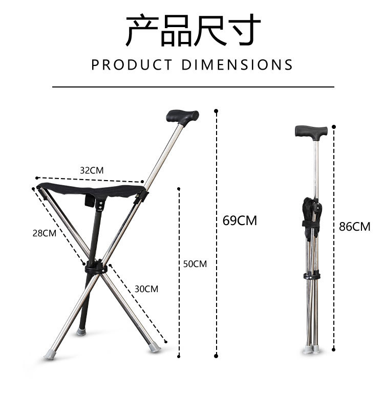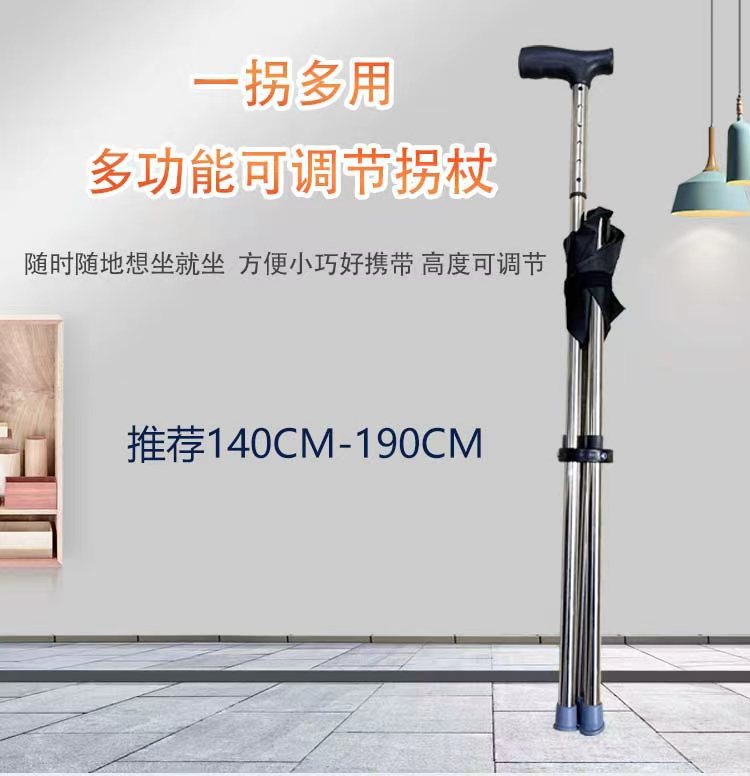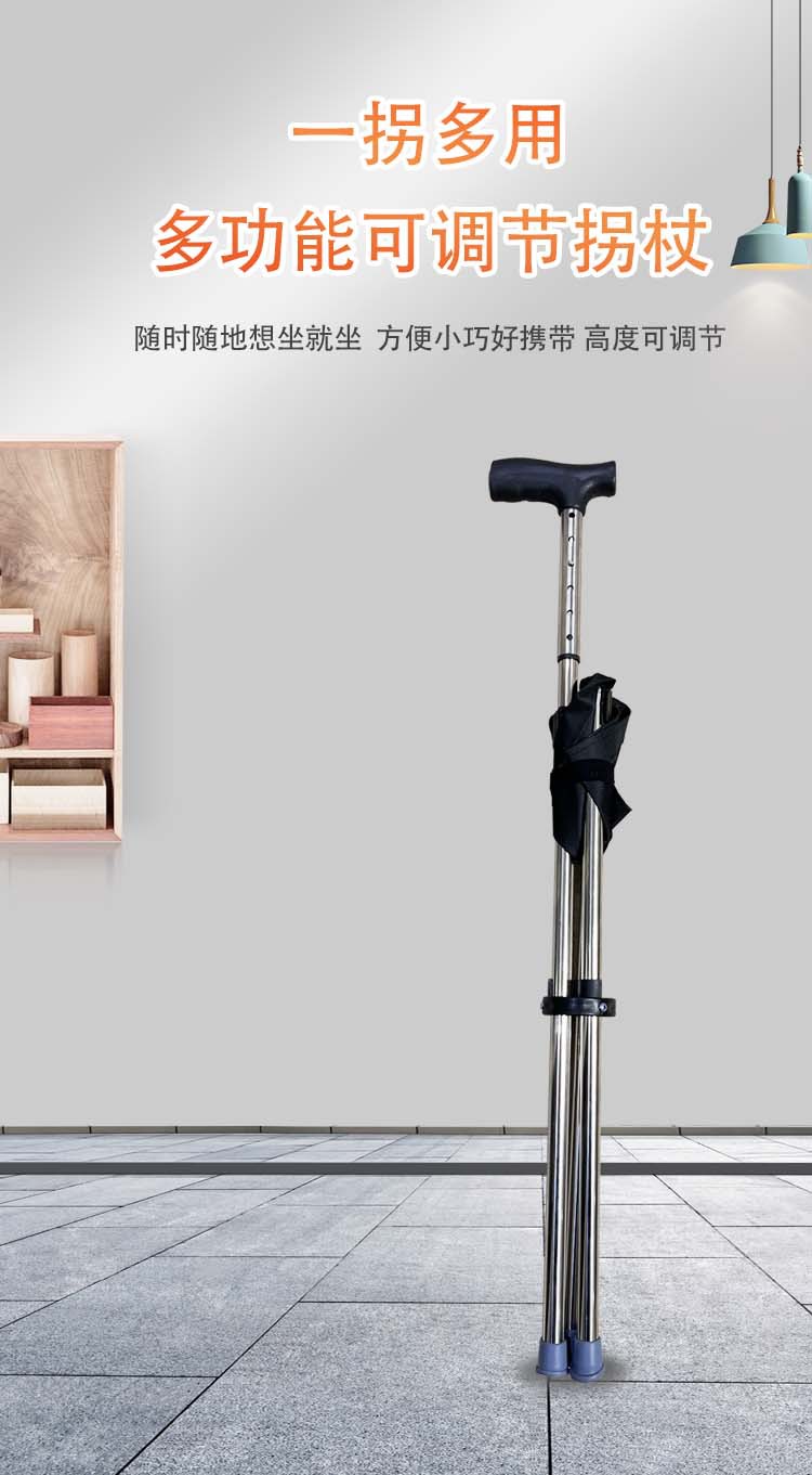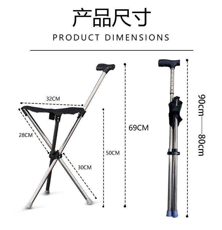 노인 미끄럼 방지 목발 목발은 의자 휴대용 접이식 지팡이로 도매 여행 유물을 앉을 수 있습니다.스토어 가기