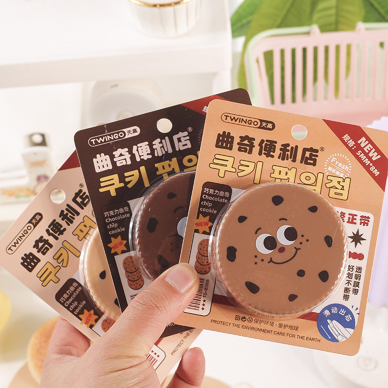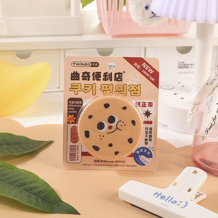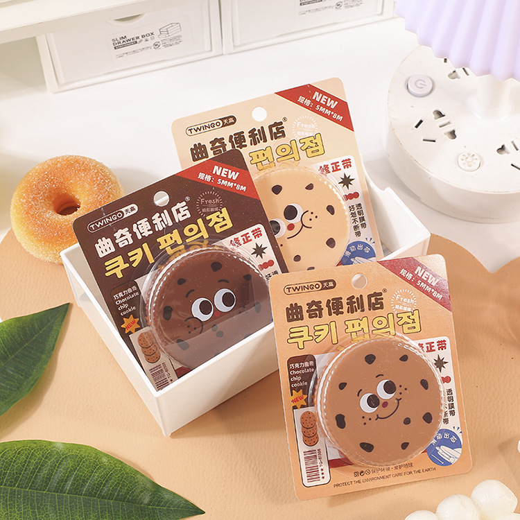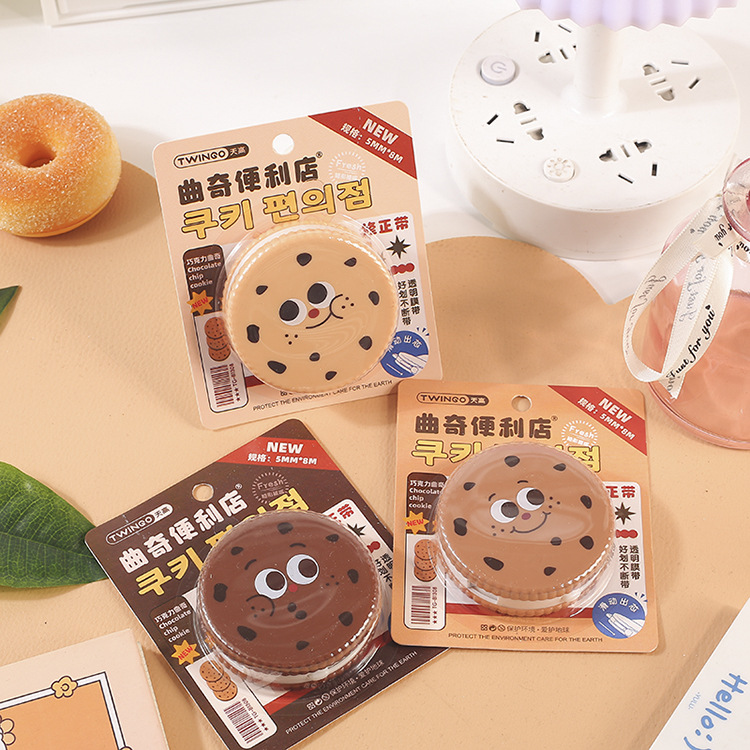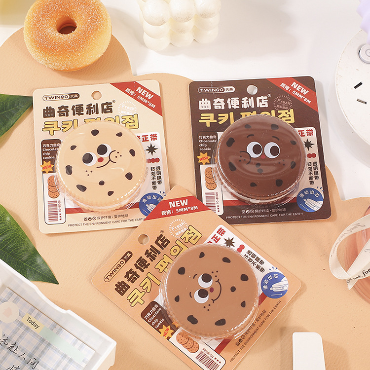 쿠키 편의점 보정 테이프 새로운 쿠키 모양 보이지 않는 푸시 입 휴대용 학생 소녀 귀여운 교정 테이프