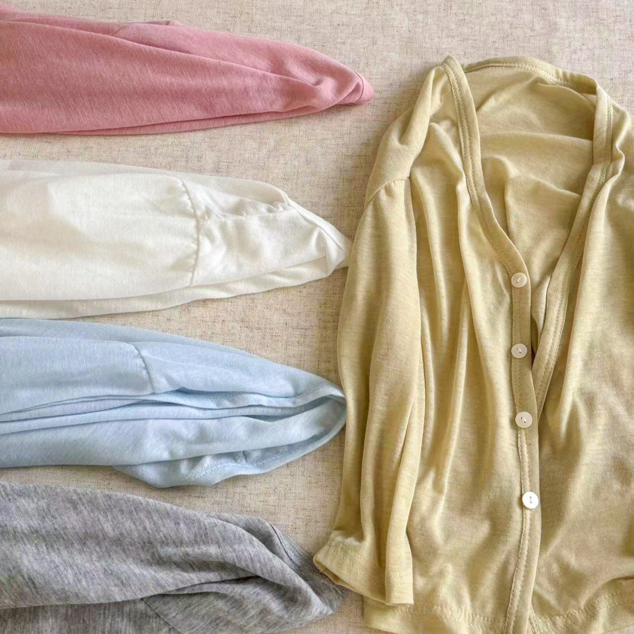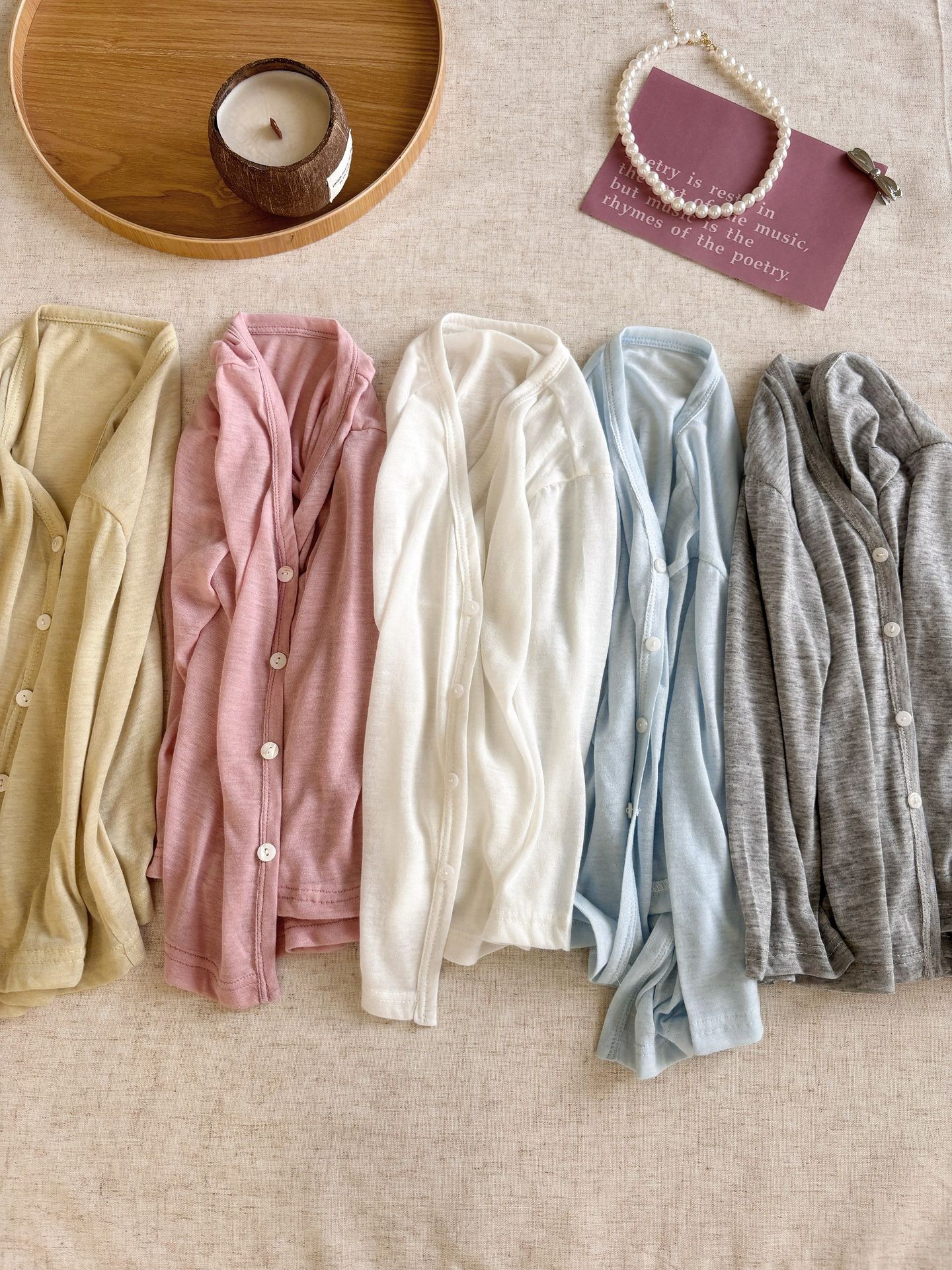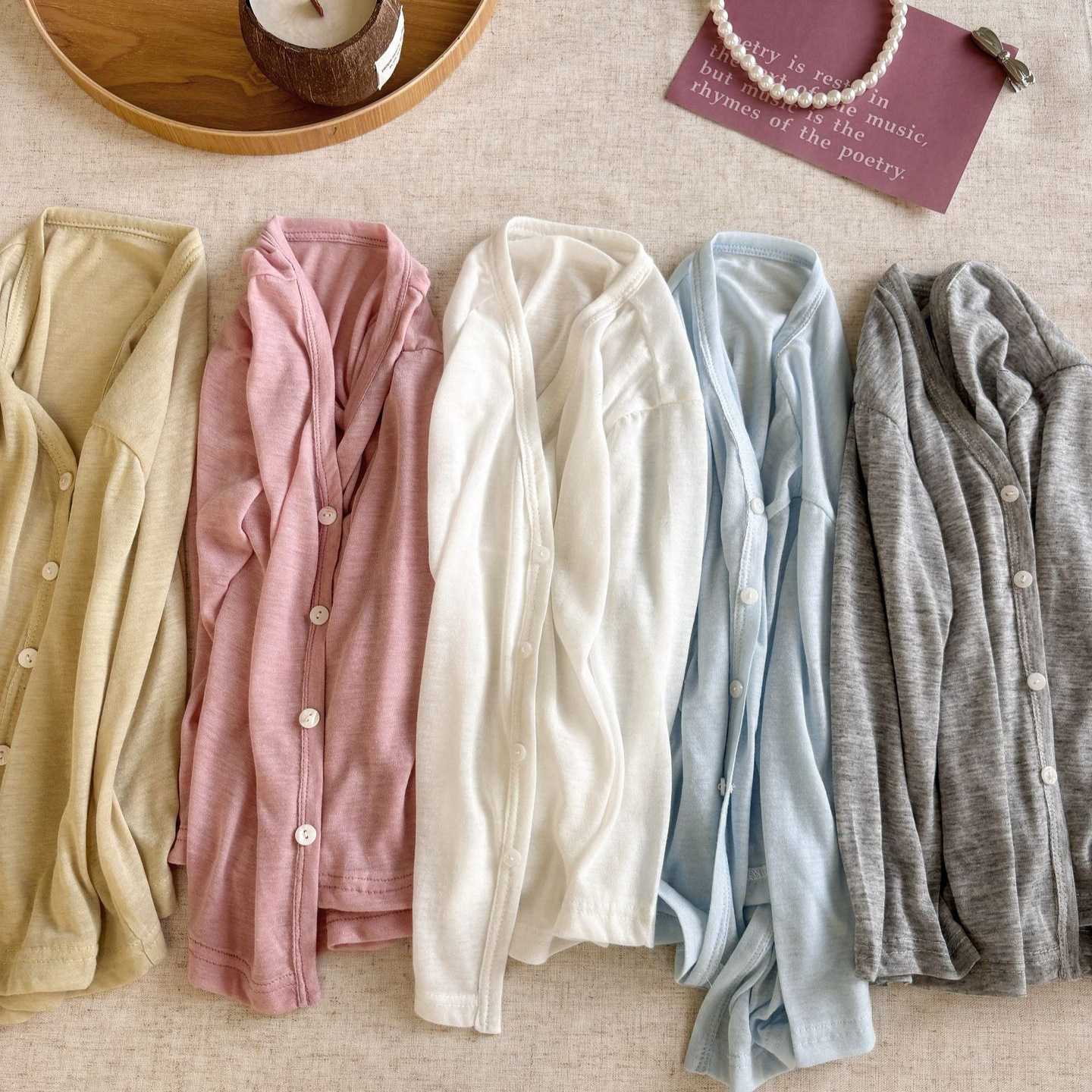 여자 선스크린 코트 2024 여름 새로운 어린이 에어컨 셔츠 남녀 경량 소프트 왁스 아우터 텐셀 카디건스토어 가기