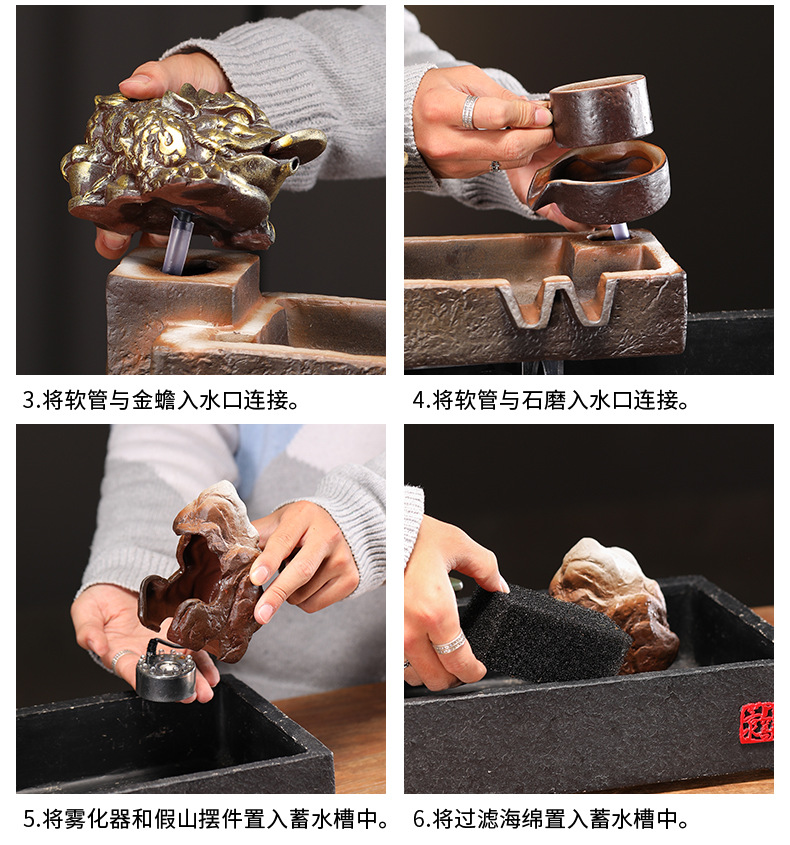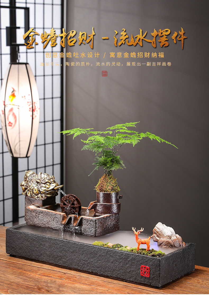 Zhaocai 흐르는 물 장식품 순환 물 창조적 인 Zhaocai 어항 사무실 거실 홈 데스크탑 집들이 오프닝 선물스토어 가기