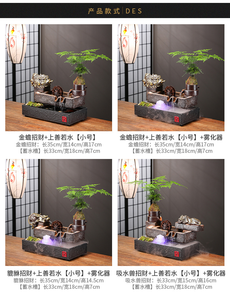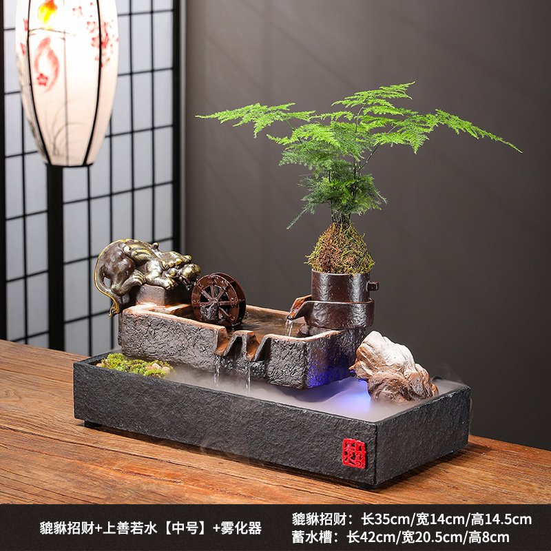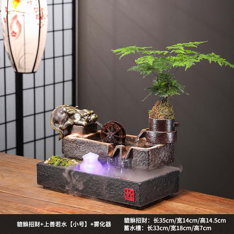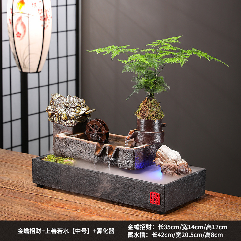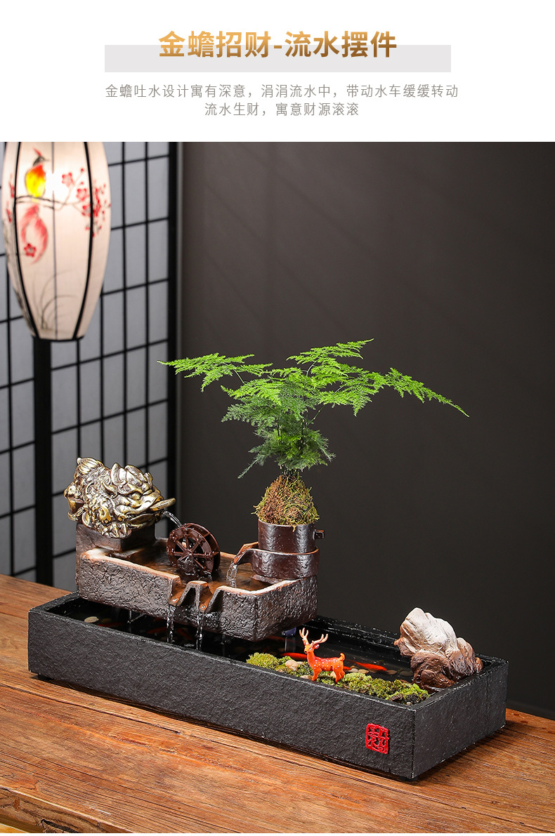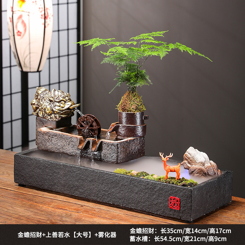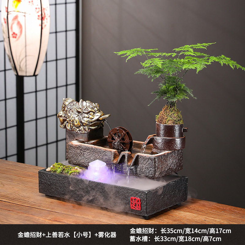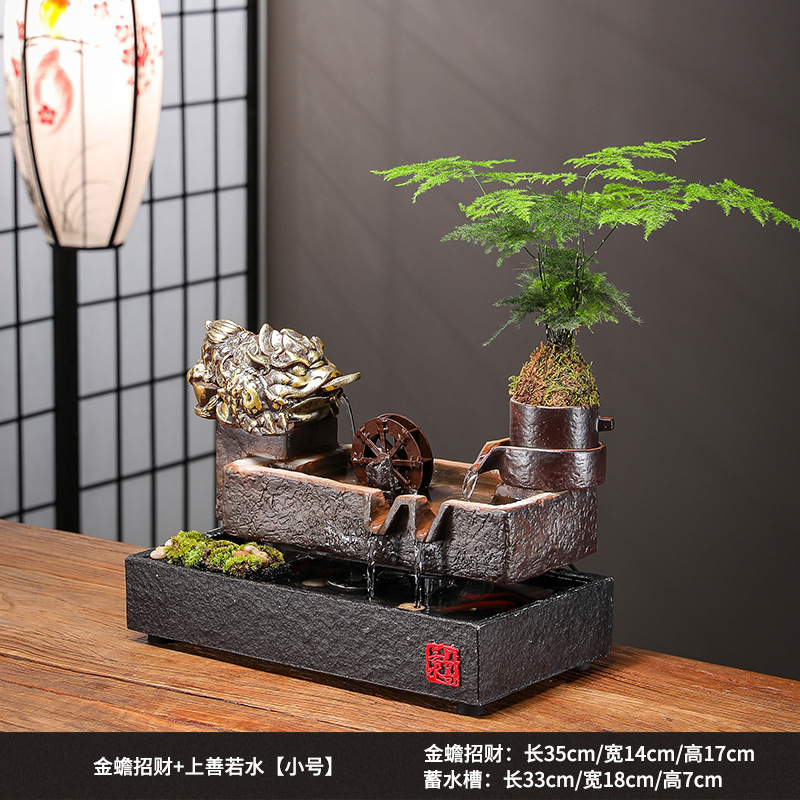 Zhaocai 흐르는 물 장식품 순환 물 창조적 인 Zhaocai 어항 사무실 거실 홈 데스크탑 집들이 오프닝 선물