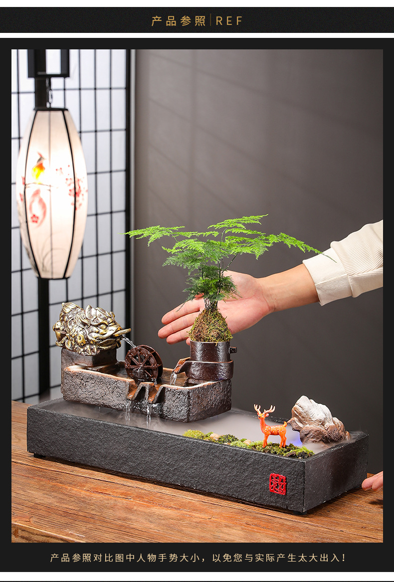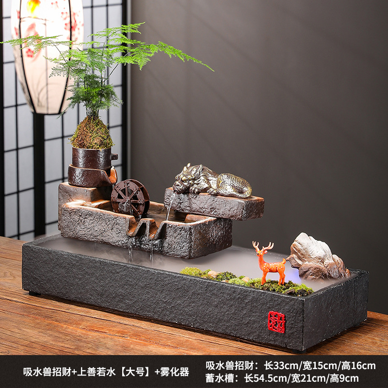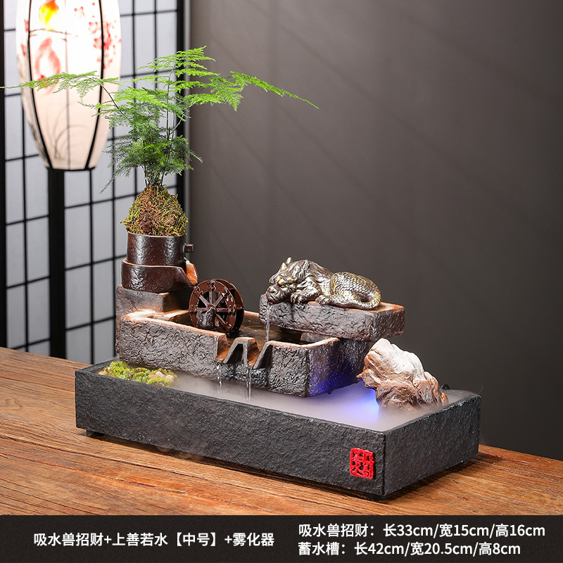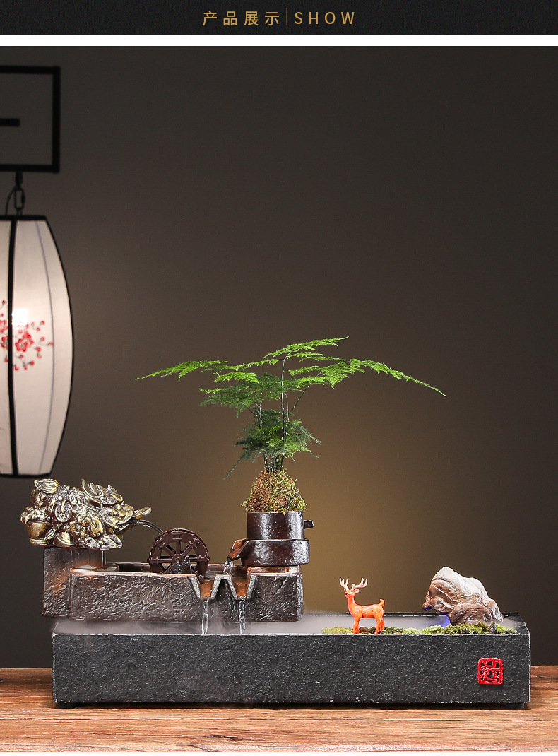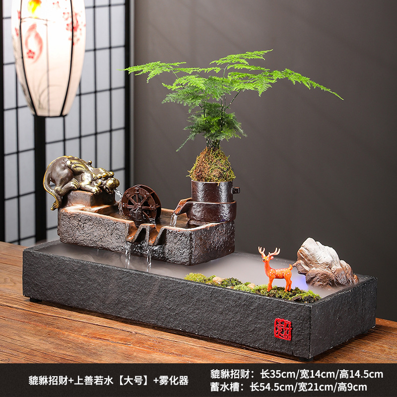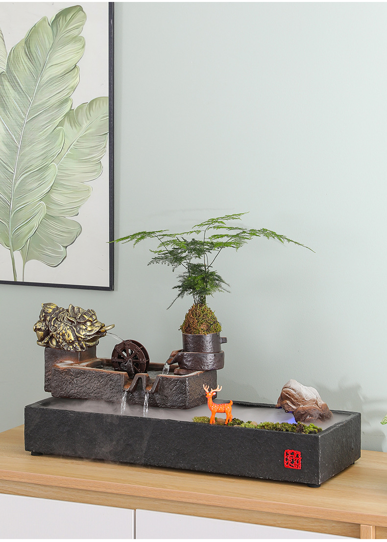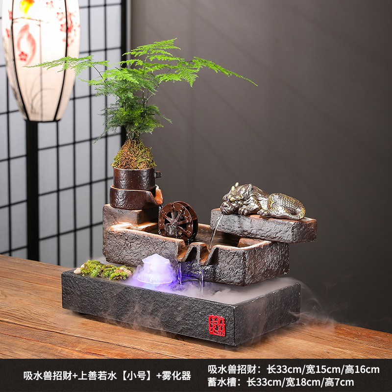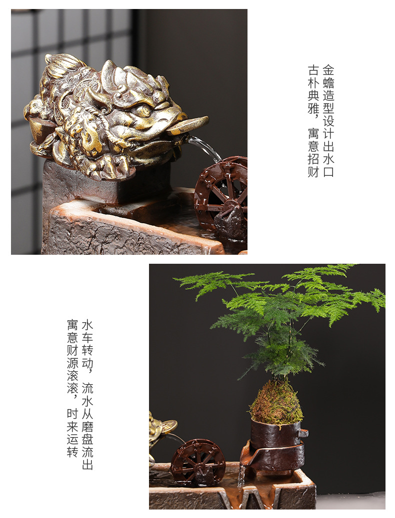 Zhaocai 흐르는 물 장식품 순환 물 창조적 인 Zhaocai 어항 사무실 거실 홈 데스크탑 집들이 오프닝 선물