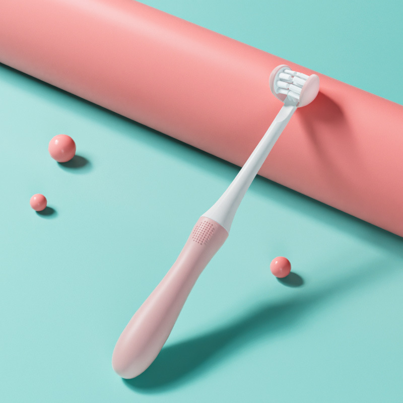 • 핑크 3 면 칫솔 [3 ~ 12 세] C1