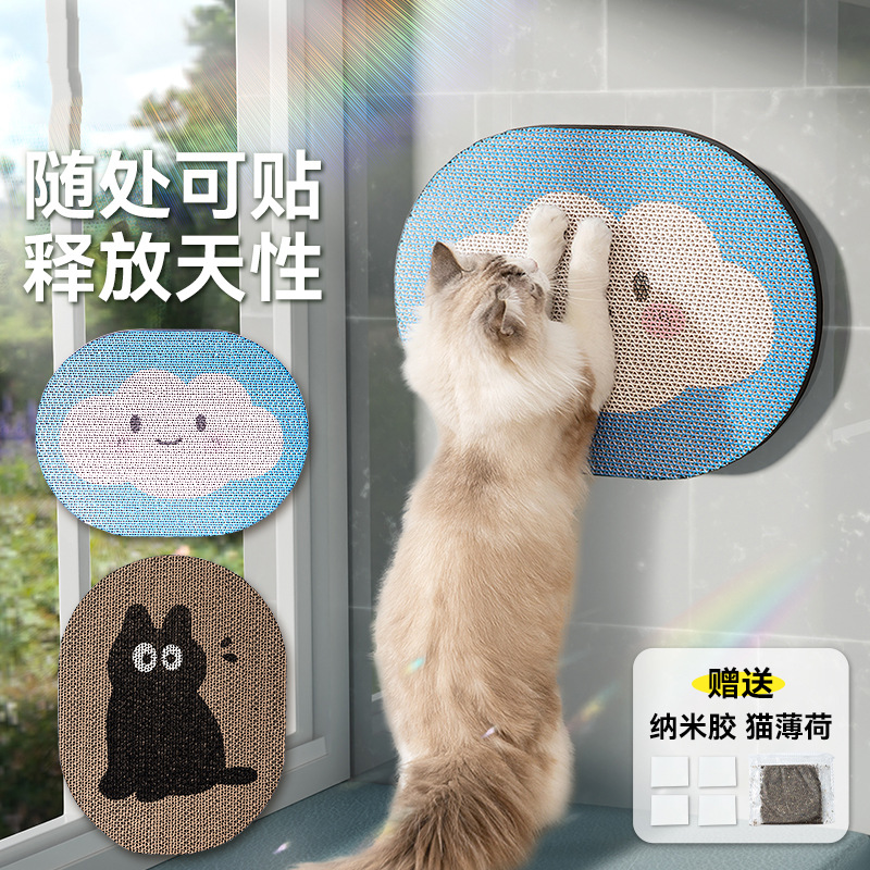 구름 푸른 만화 끈끈한 벽 고양이 긁는 보드 재생 가능한 소매 가능한 착용 방지 스크래치 방지 보호 가구 애완 동물 고양이 장난감스토어 가기
