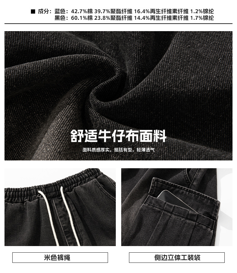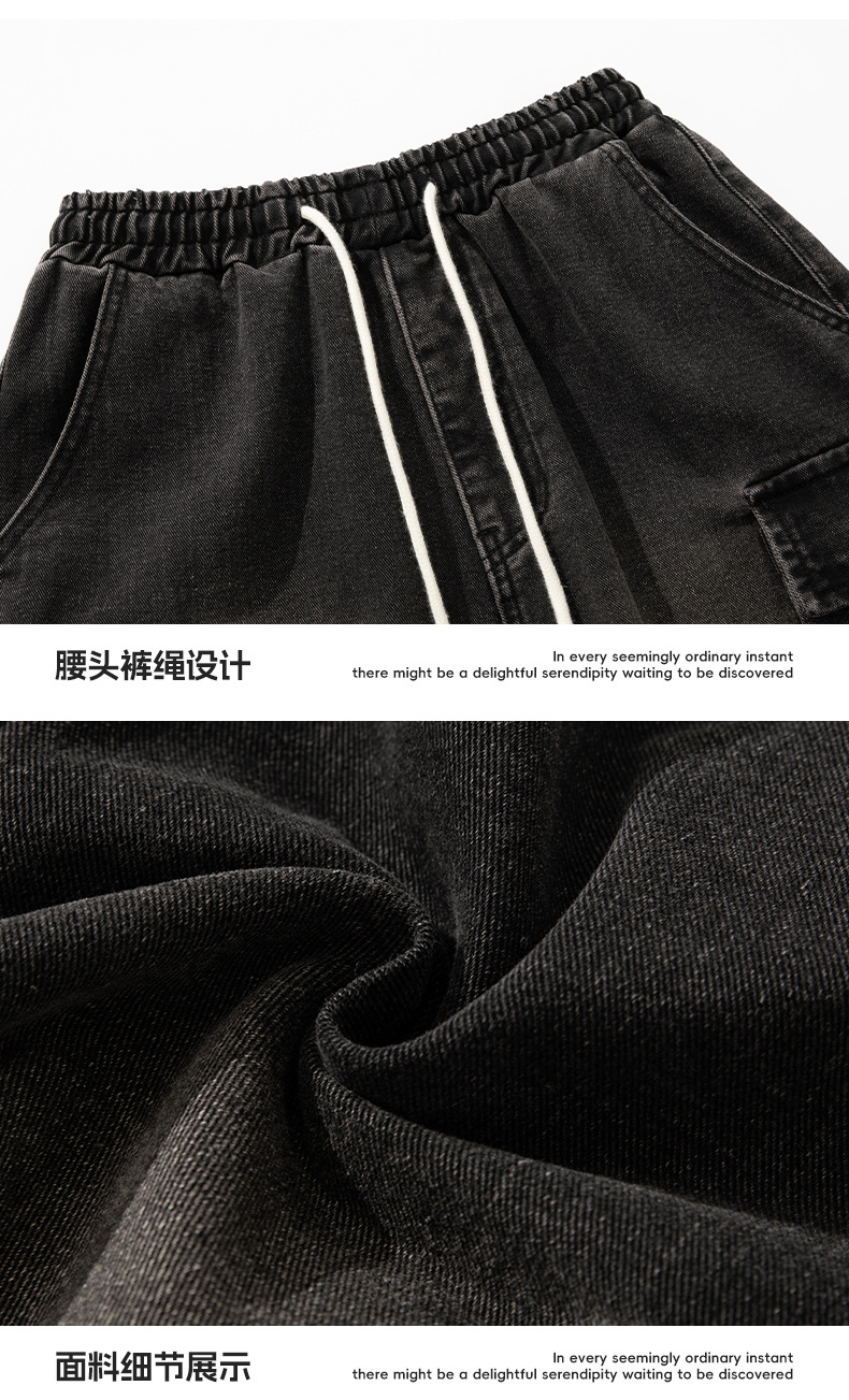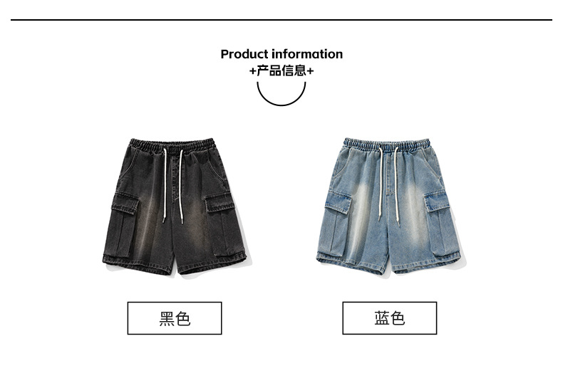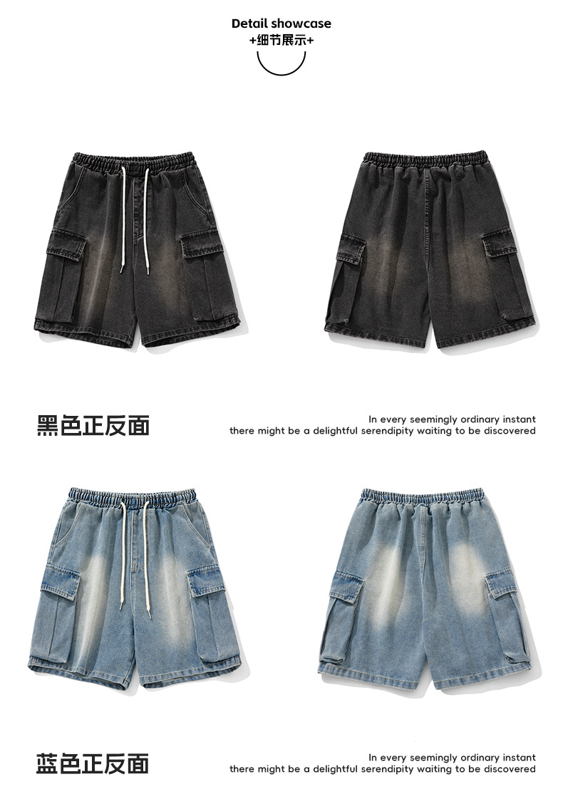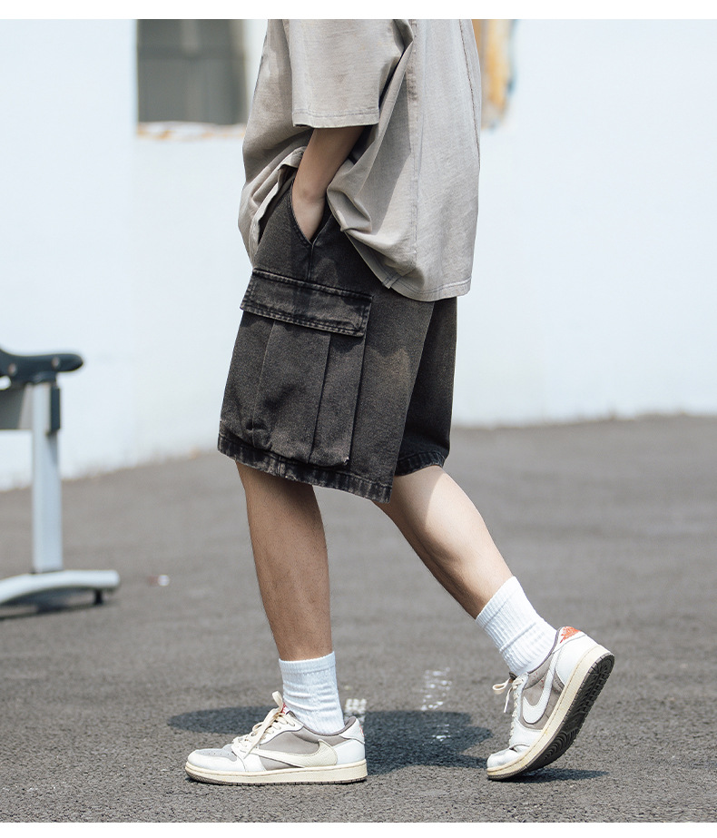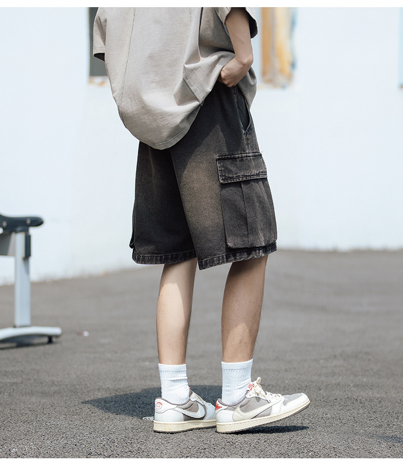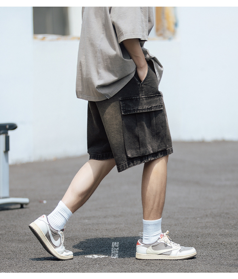 하이 스트리트 오래 된 사이드 포켓 디자인 데님 반바지 남자 여름 일본 캐주얼 느슨한 끈 바지스토어 가기