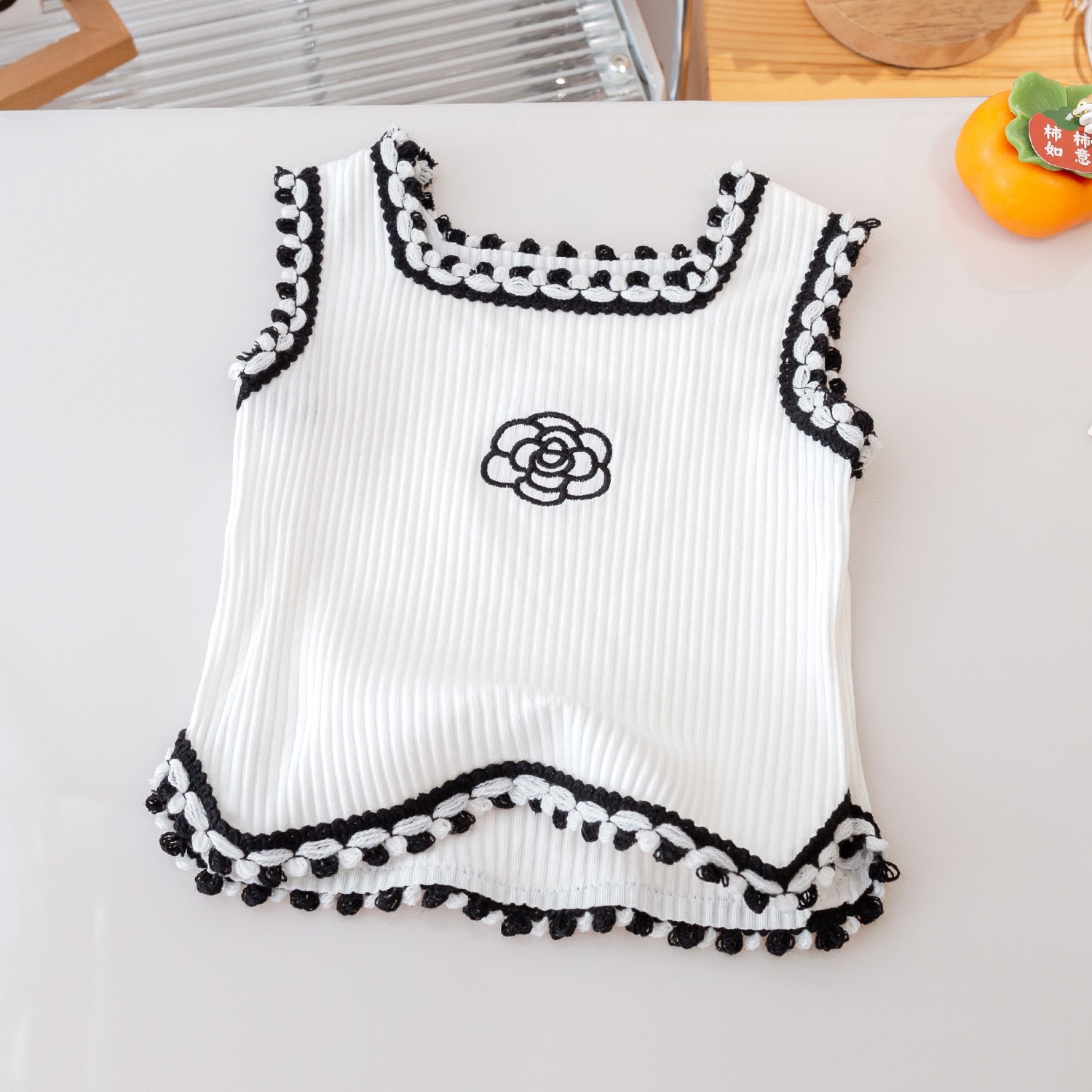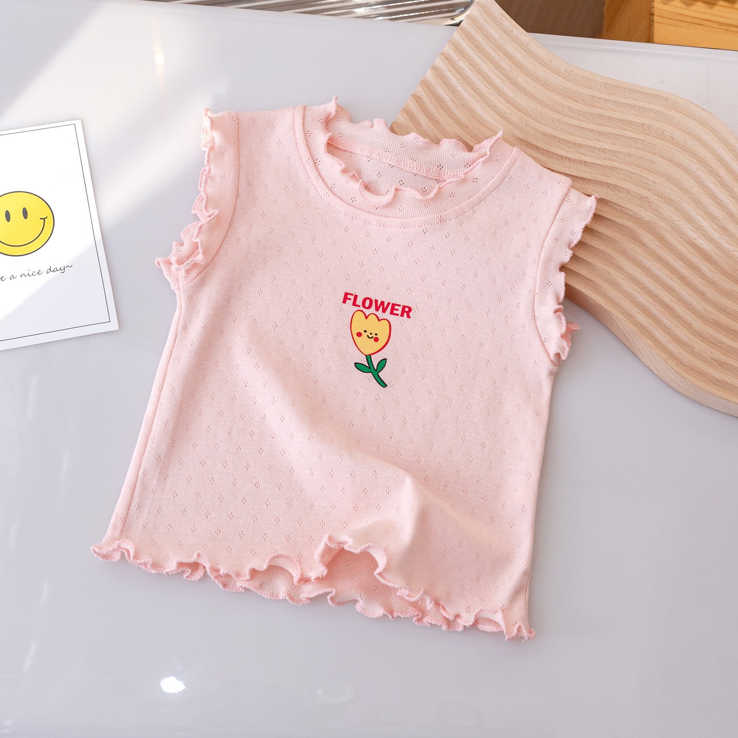 중소 어린이 아기 부드러운 얇은 면화 탑 2025 여름 새 스타일 소녀 유행 조끼 티셔츠 3