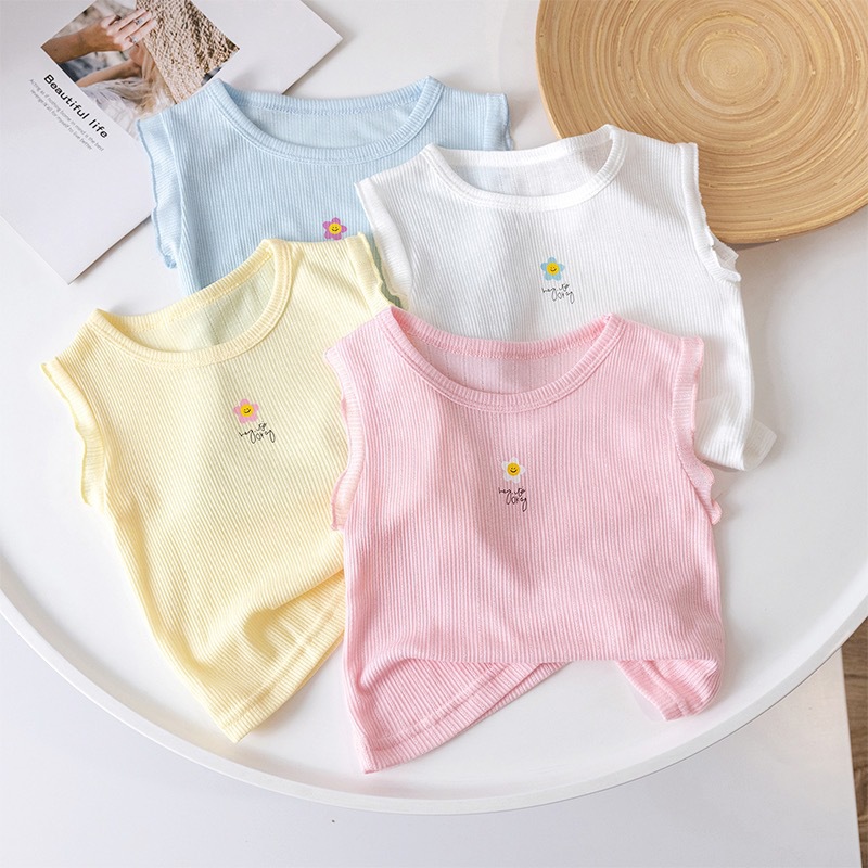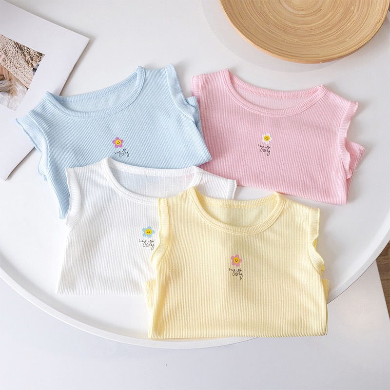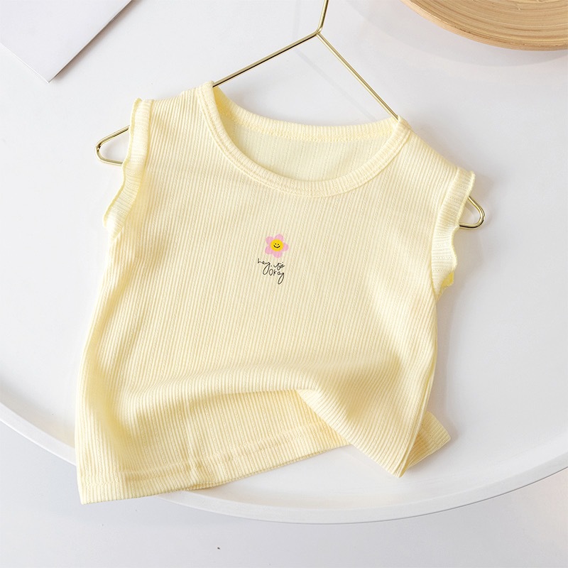 중소 어린이 아기 부드러운 얇은 면화 탑 2025 여름 새 스타일 소녀 유행 조끼 티셔츠 3스토어 가기