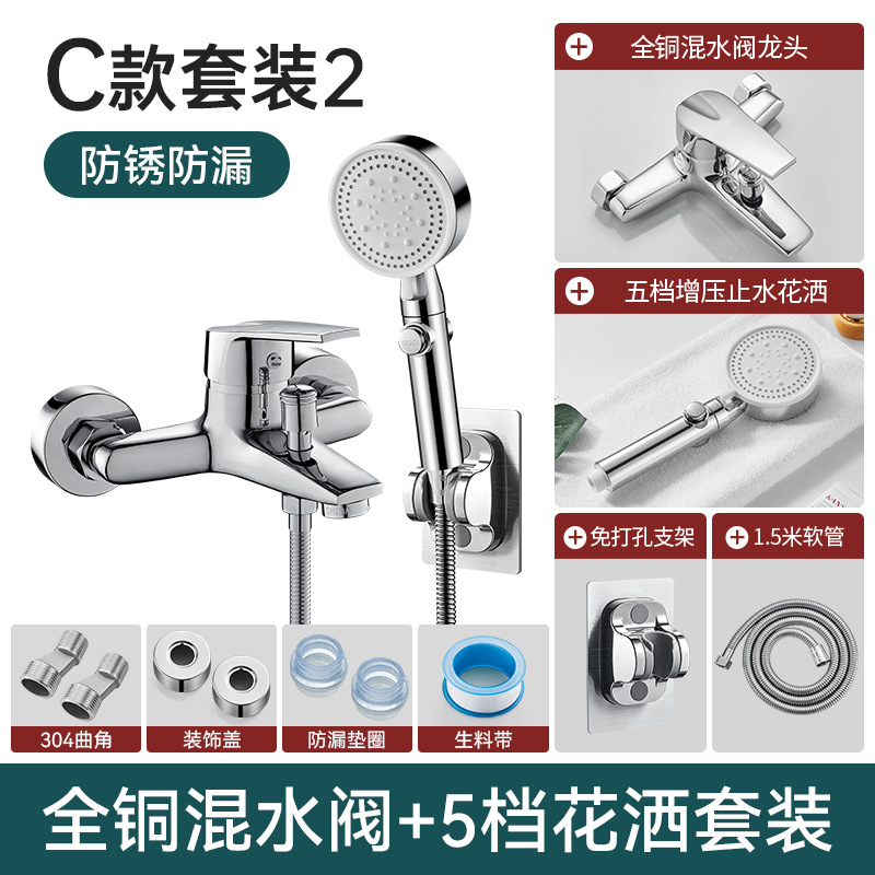 • [업그레이드] 모든 구리 두꺼운 혼합 밸브 5 단 압축 샤워 세트)
