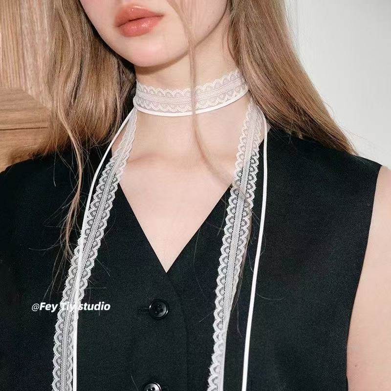 게으른 한국 레이스 머리띠 여성 낮은 포니 테일 레이스 깃발 새로운 실크 스카프 긴 머리 넥타이 헤어 액세서리 머리 장식