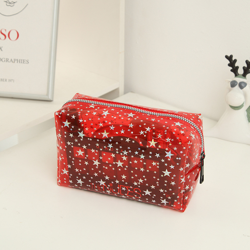 블랙 파이브 포인트 스타 패션 대용량 화장품 가방 투명 화장품 가방 여성 휴대용 야외 여행 세탁 가방