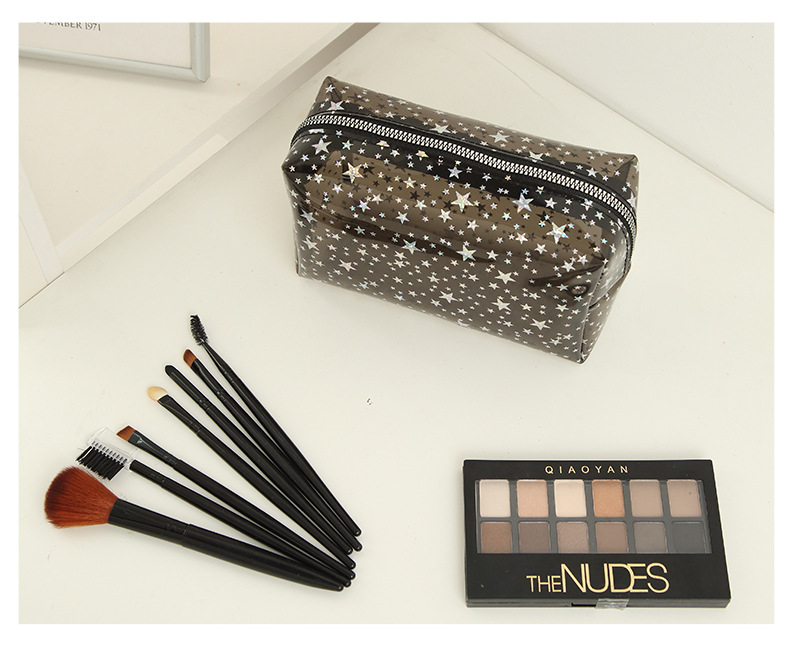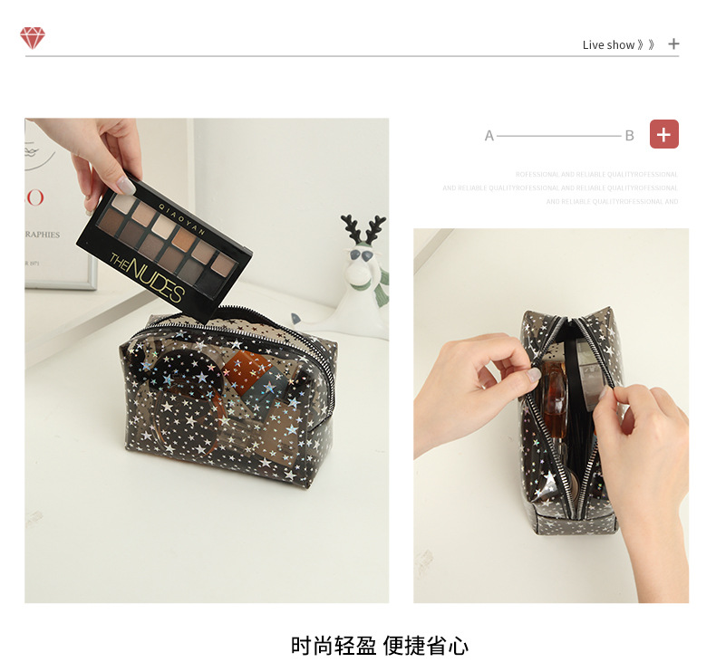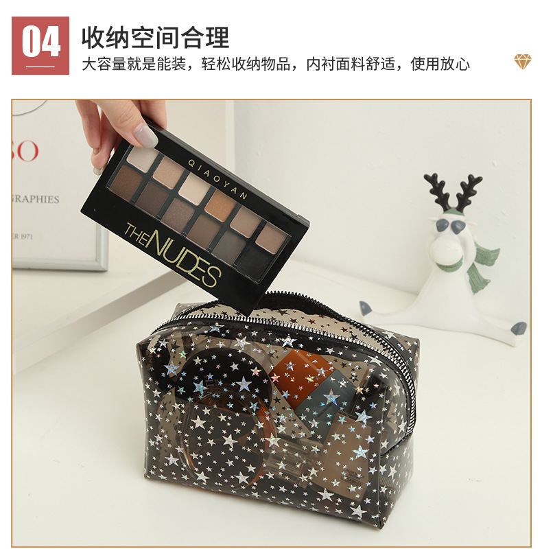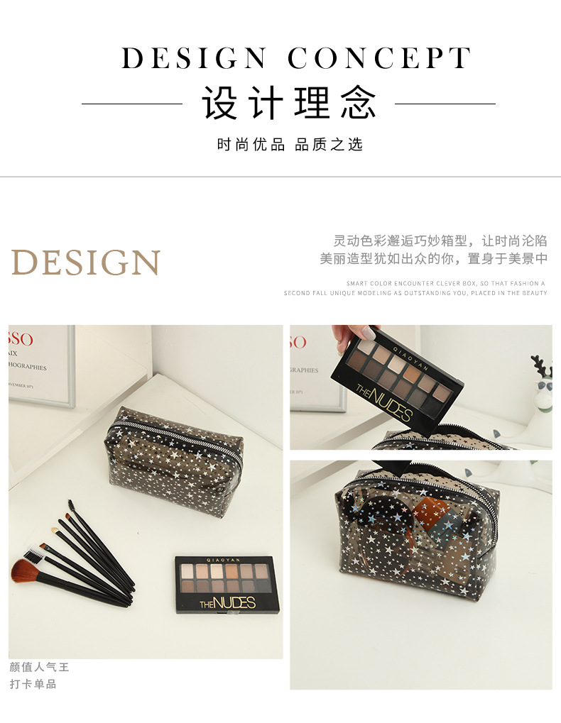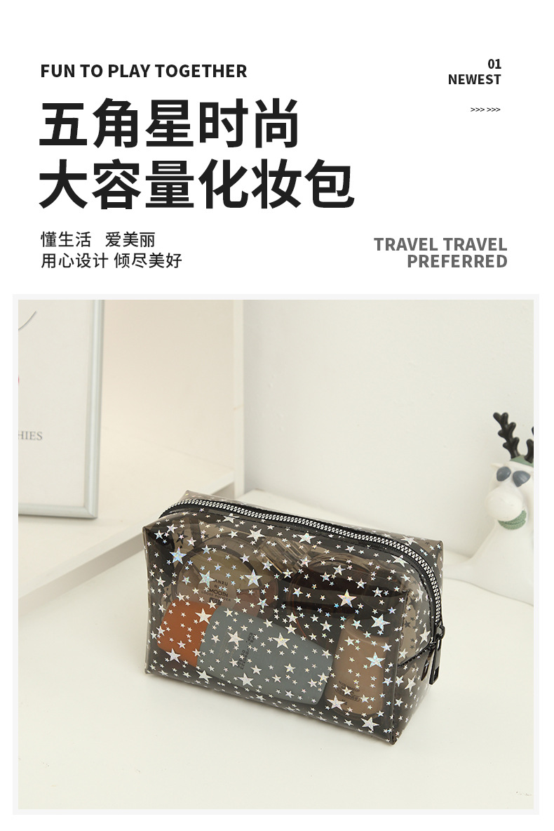 블랙 파이브 포인트 스타 패션 대용량 화장품 가방 투명 화장품 가방 여성 휴대용 야외 여행 세탁 가방스토어 가기