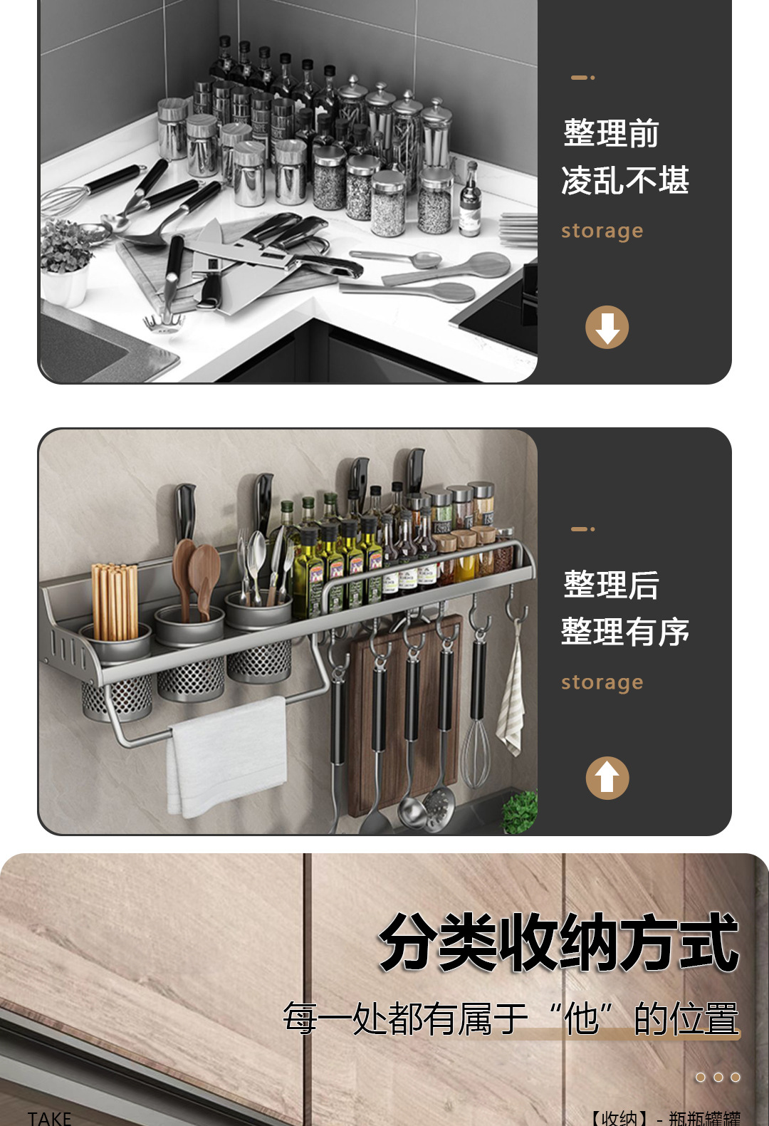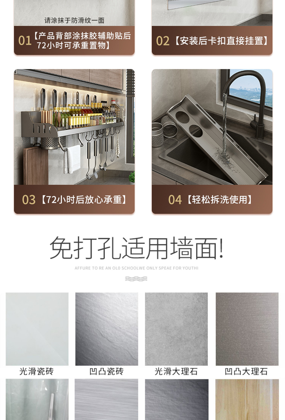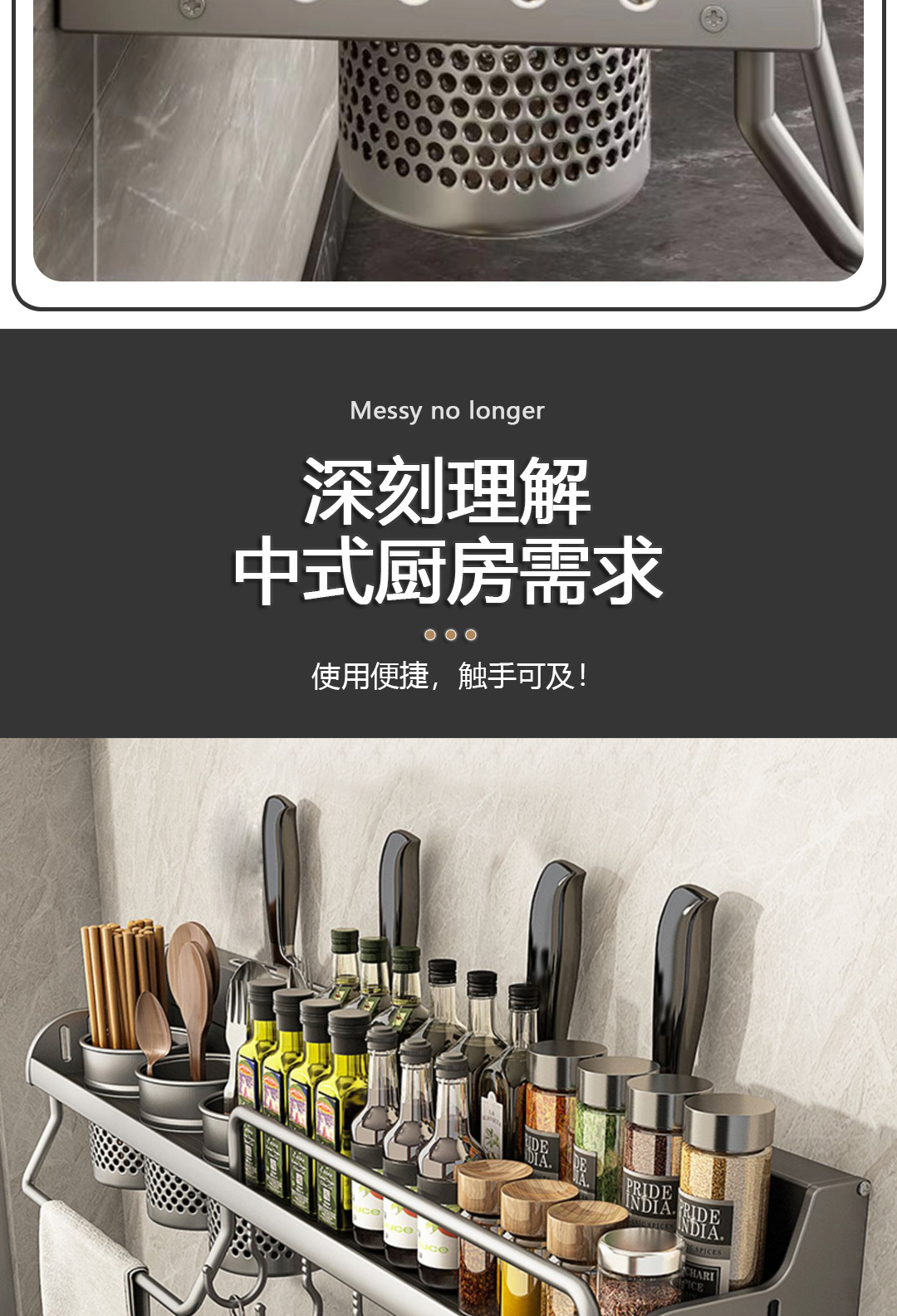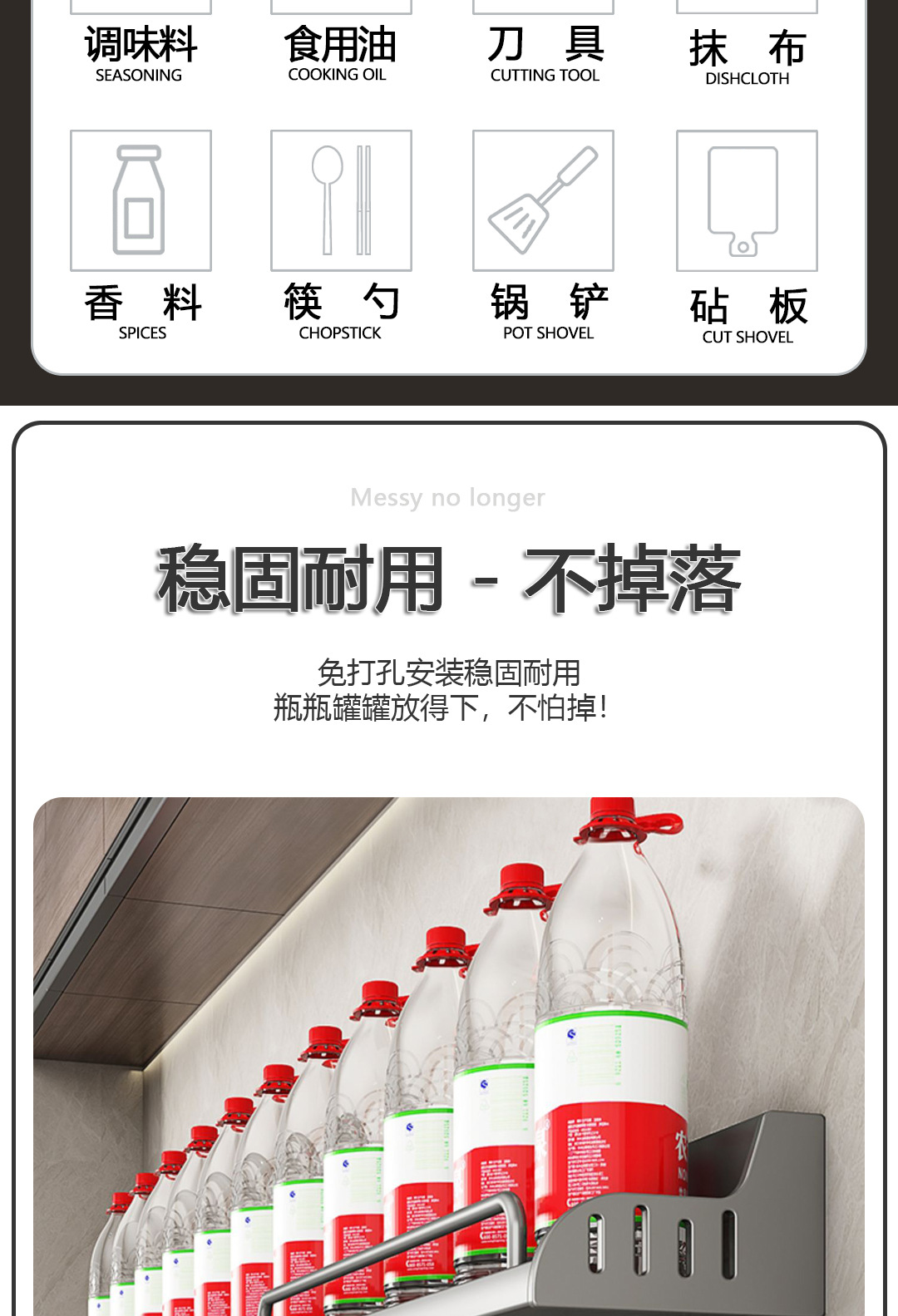 주방 보관 랙 젓가락 칼 홀더 펀치없는 다기능 용품 Daquan 벽걸이 조미료 가정용 스토리지 랙